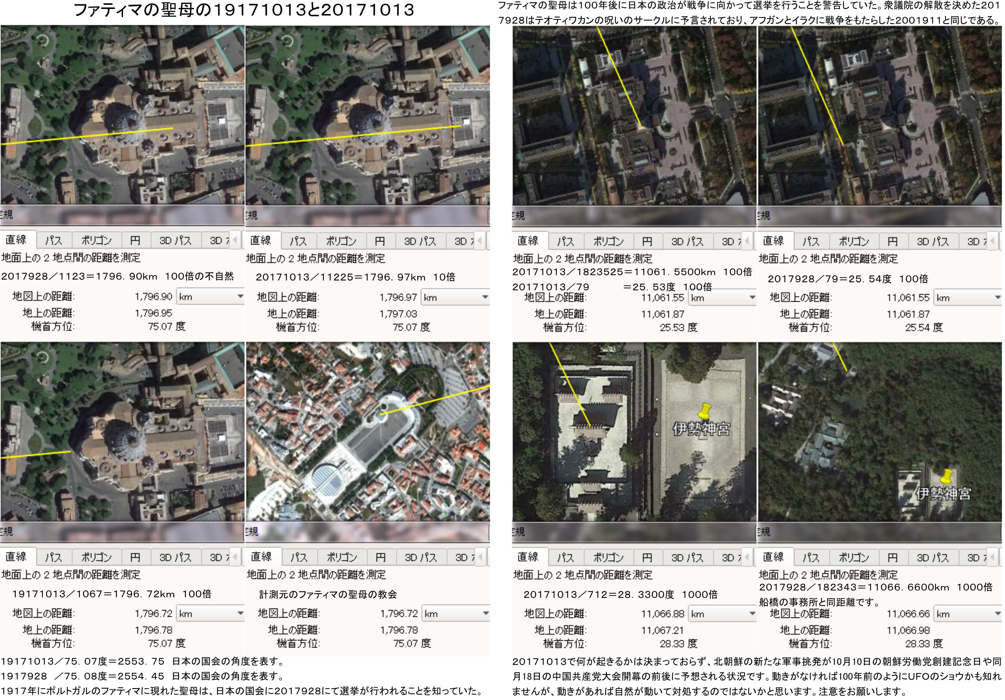 こうなると続きが重要になります。遺跡の組み込み関連を調べる作業を進めた結果、ファティマの聖母は2017928における日本の国会の異変と、20171013における何らかの変化の動きを伝えていることが明確になりました。恐らくファティマの聖母の第三の予言は、日本の国会の解散から戦争への流れを教える物ではなかったかと思えるのです。公表しなければバチカンの崩壊を招くとしていたかも知れません。