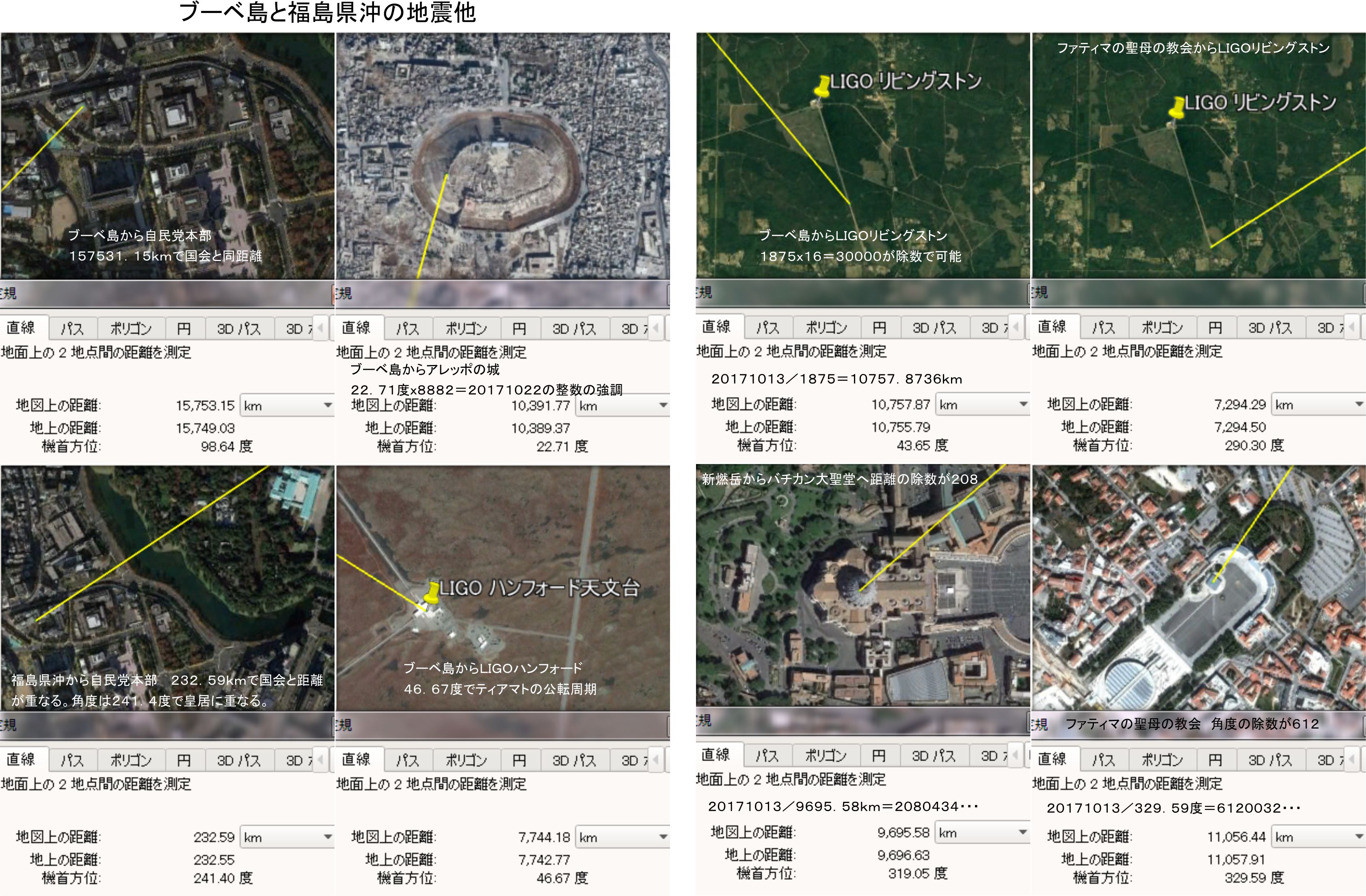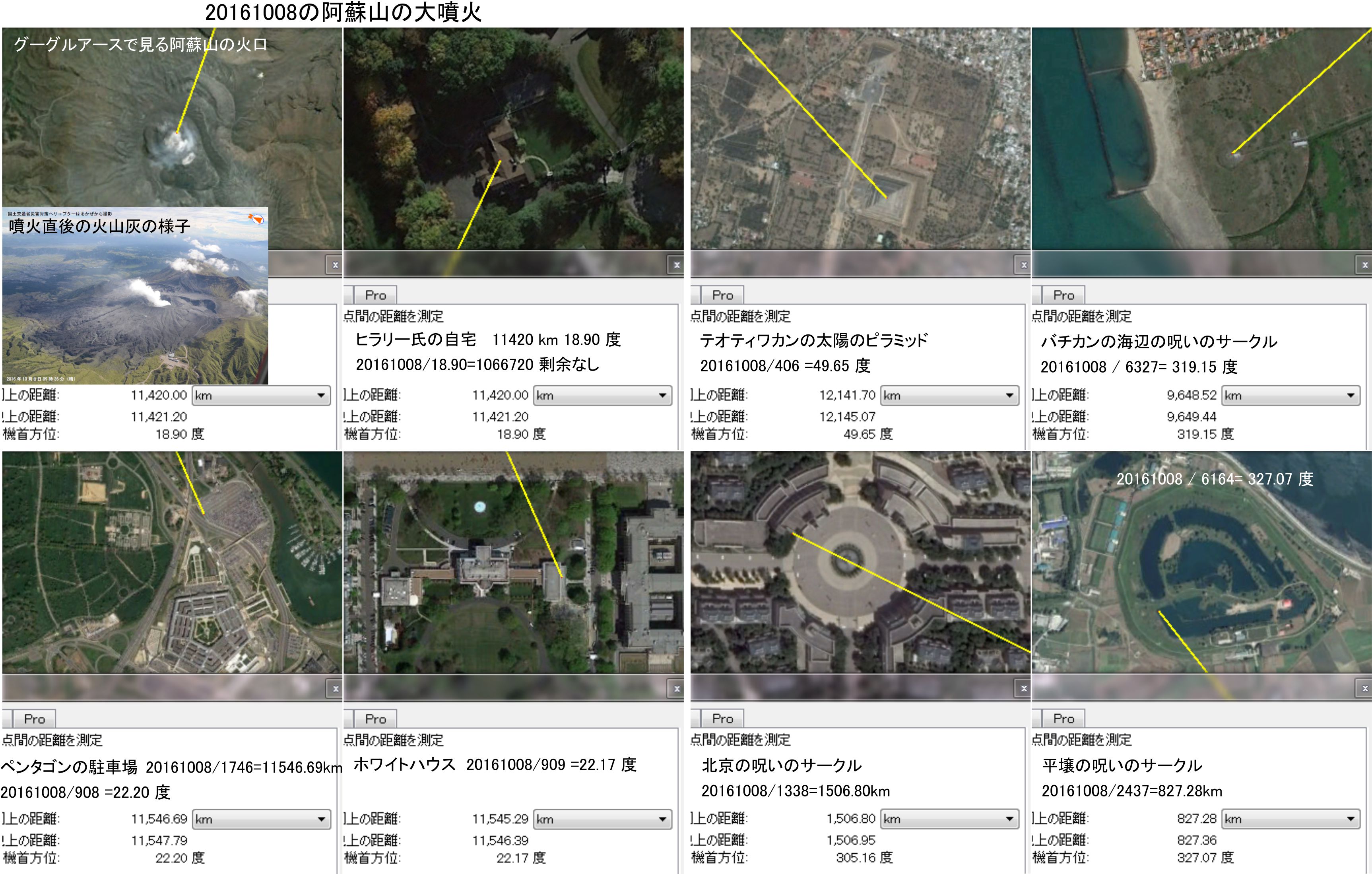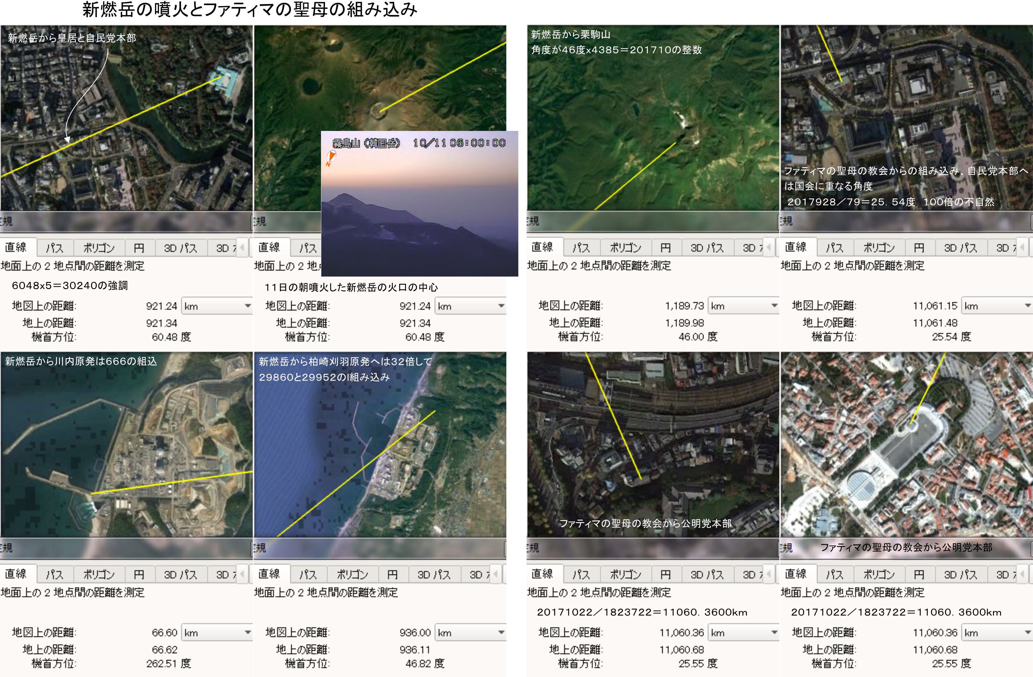 10月10日に噴気が400mまで上がり始め、11日の朝に噴火した新燃岳ですが、こちらも角度で自民党本部と皇居を重ねています。単純に重ねるのではなく60.48度に調整されており、30240と使って大きな強調としたいのでしょう。桜島の分には与党への組み込みは確認できませんでした。