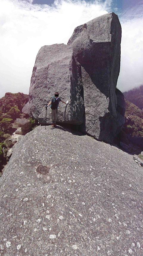 造山活動の結果で出来た山の場合、雨による土砂の流失があるので、山頂には岩が残りやすいと思います。この意味では花崗岩だらけの屋久島では山頂に花崗岩があるのは普通のことだと思います。巨石の設置された形のピークが自然の物なのか、人工の物なのか、議論の余地があるようです。