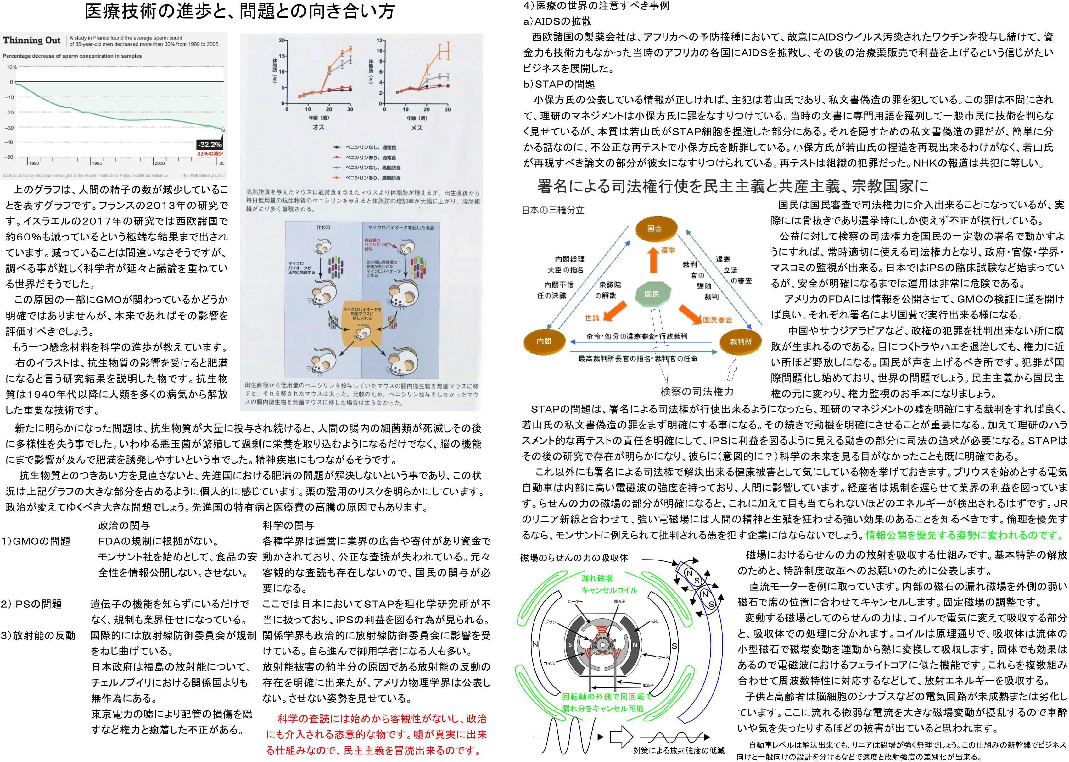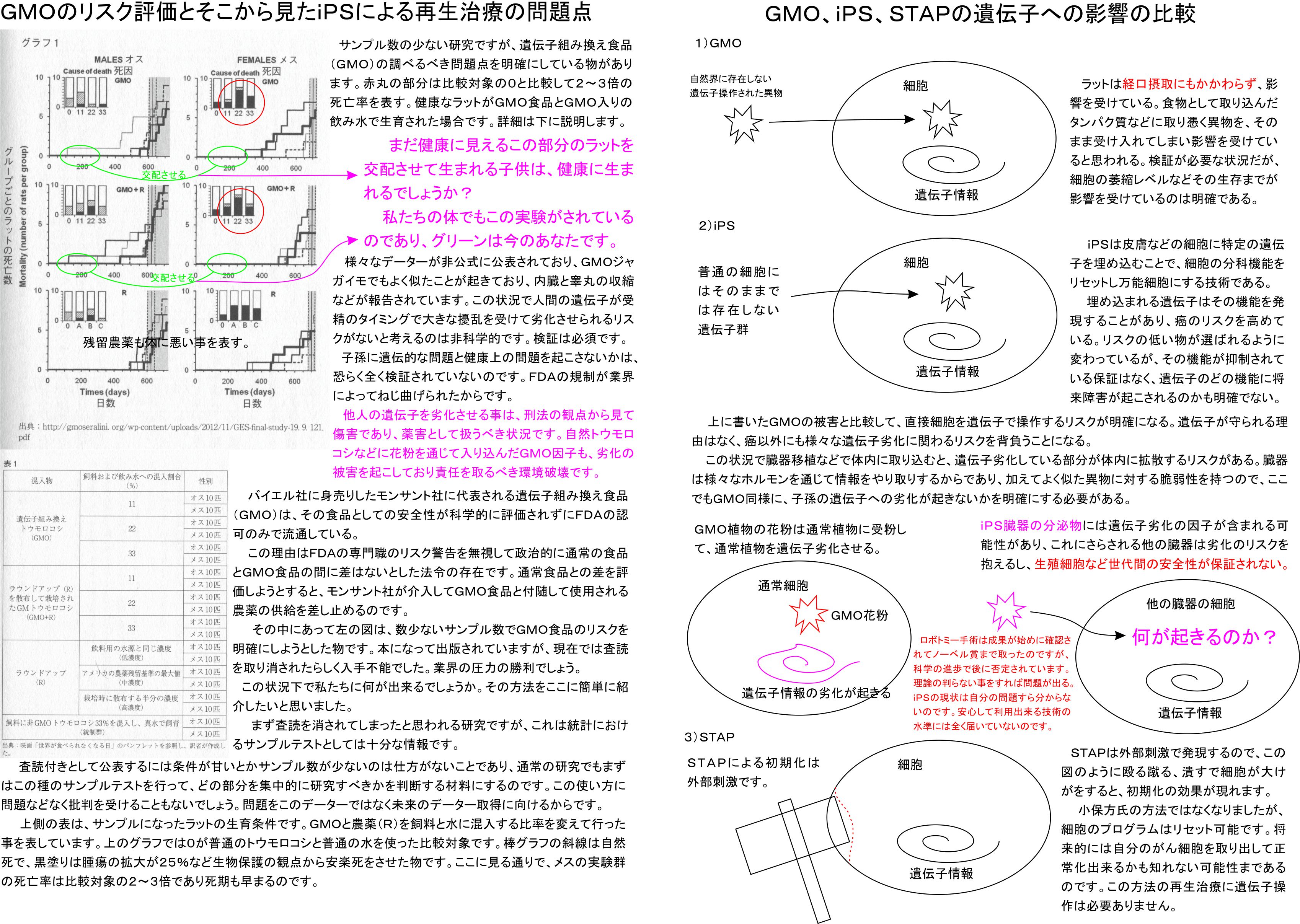 科学の記事を本日3日に出したかったのですが、上記に従いSTAPとiPSとモンサントの批判を載せるイラストをこれから検討して載せることにしました。記事は遅れる可能性が高まりましたので、ここにお詫びをしておきます。丁度3日になったところです。