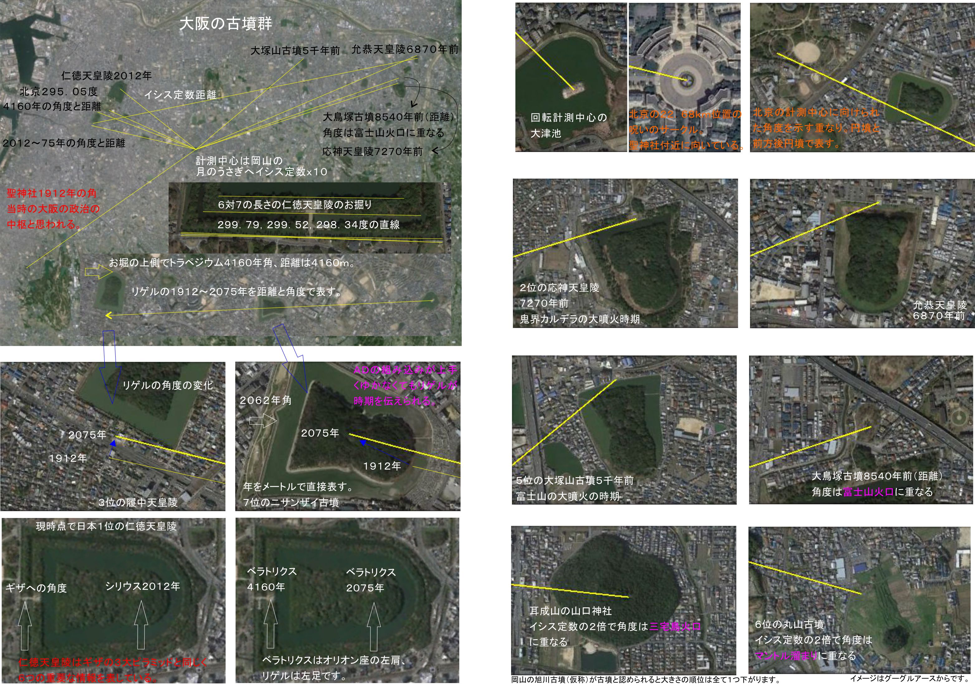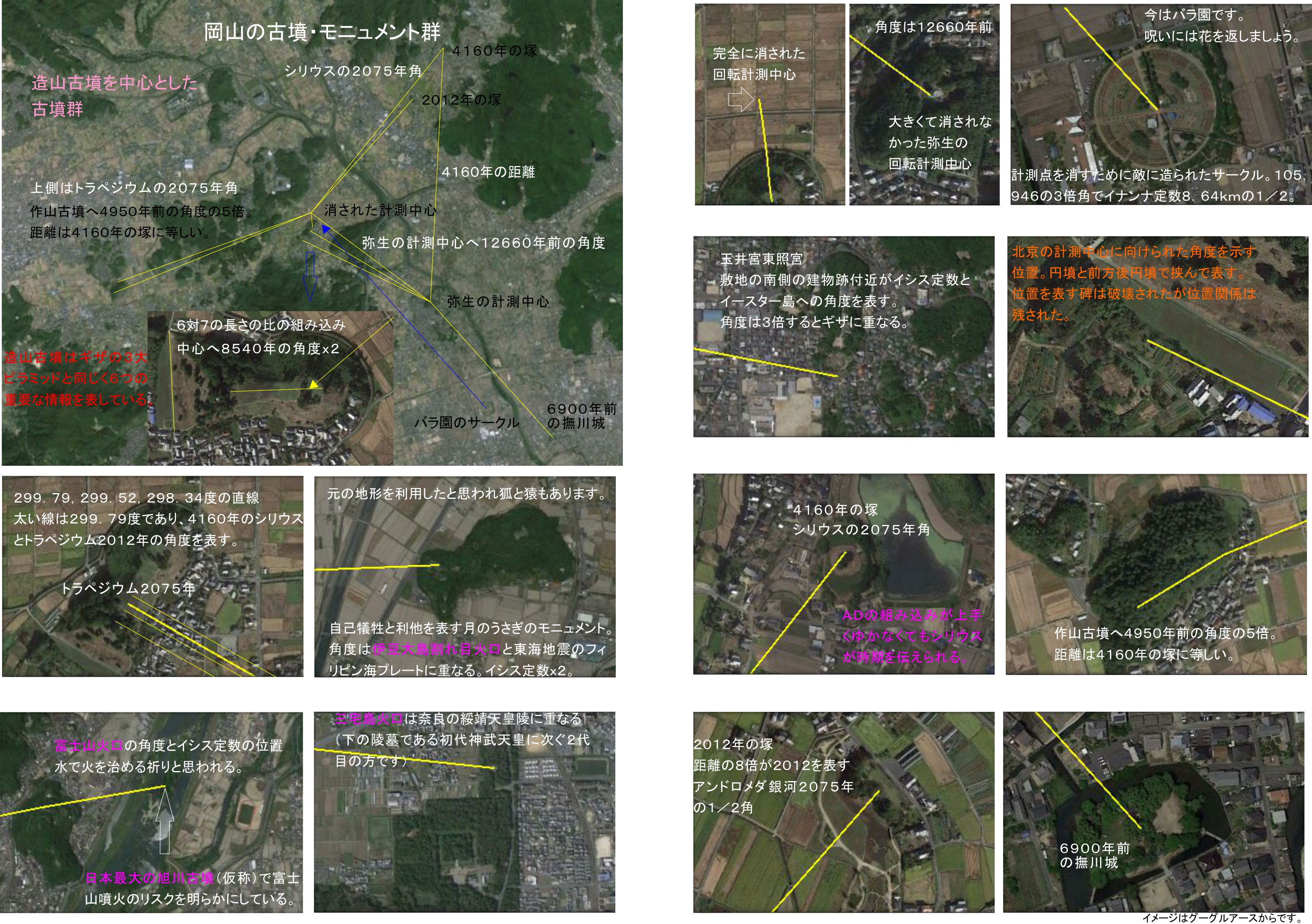 ホツマツタエと日本の古墳群に一致は見られており、これからの重要なテーマでしょう。先史文明の人々が改竄されてしまう文字を、その重要な情報の伝達手段に選ばなかったのは、過去に苦しめられた文字の性質故でしょう。簡単に変える事の出来ない大型遺跡などを残し、この工夫で情報を私たちに伝えているのです。