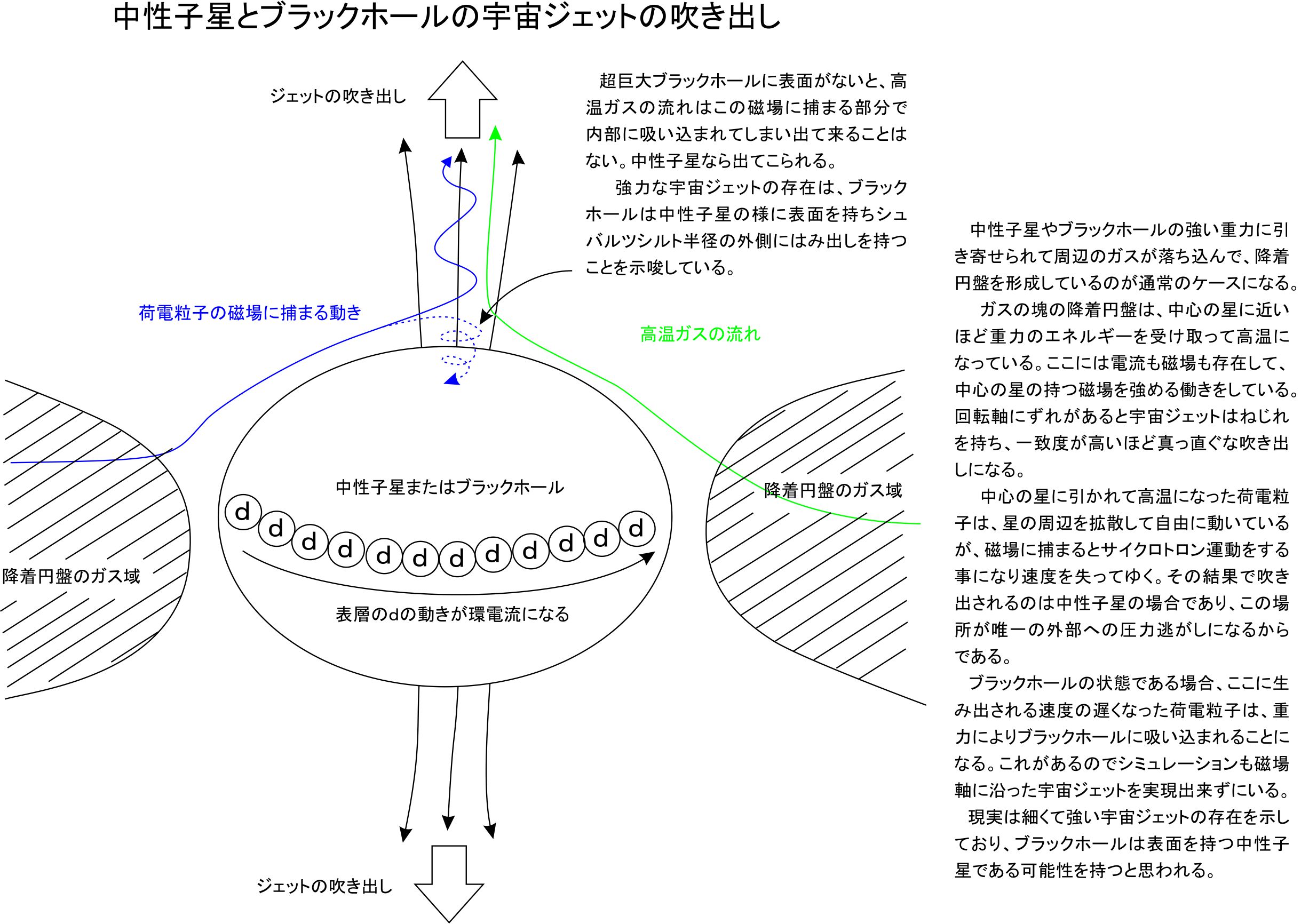 ブラックホールの理論を考える時に、不思議に思う現実に直面します。主要な理論は素粒子論を加味していないのです。ホーキング氏の理論で有名なブラックホールの蒸発ですが、量子論までは加味されていても素粒子論は含まない様なのです。不要な理論にされているのだと思いますが、こちらが新しく天文学に導入したい物こそ素粒子論のヒッグス場です。10兆度を越えると重力を失うので、この状況が現実的にどの様に影響をしているのか検討するくらいは、新事実の発見なので当然でしょう。