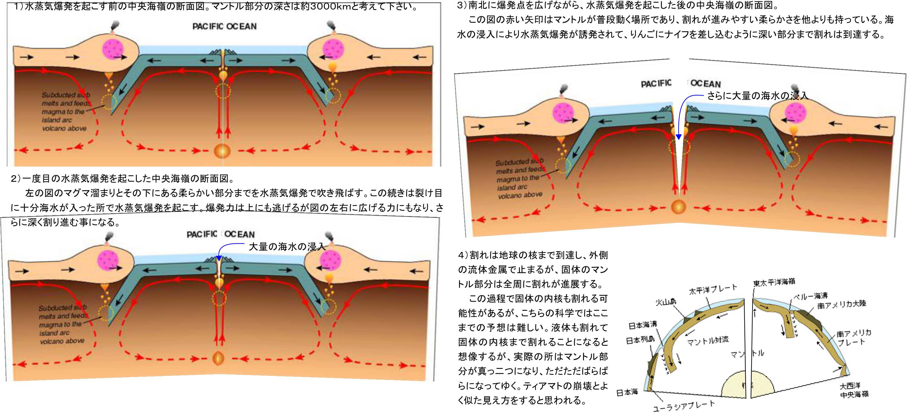 29834年前 この時期になってアトランティス(岩のドームの宗教)とムー(日本と思われホツマツタエの宗教)の確執が隕石爆弾による太平洋とインド洋エリアの津波による破壊をもたらした。アトランティス側の攻撃による被害であり善の側はその拠点の多くを失った。その後残された高地のエリアで争いが起こり、核兵器を使用する状況まで進んで善の側が勝利した。その後今の1年365日への極移動と月の周期を29.53日にするのみならず、南北への軌道の傾きをつけたことで海流の撹拌と極移動によりそれ以前よりも温暖な環境が維持出来て人口が増えるように考慮された。同時に寿命も1000才から100才へと縮められており、地球を離れる時点とそれ以降のティアマトの再生時に1000才に戻るようにされている。隕石爆弾の始まりの時期は前後十数年のずれに可能性があります。