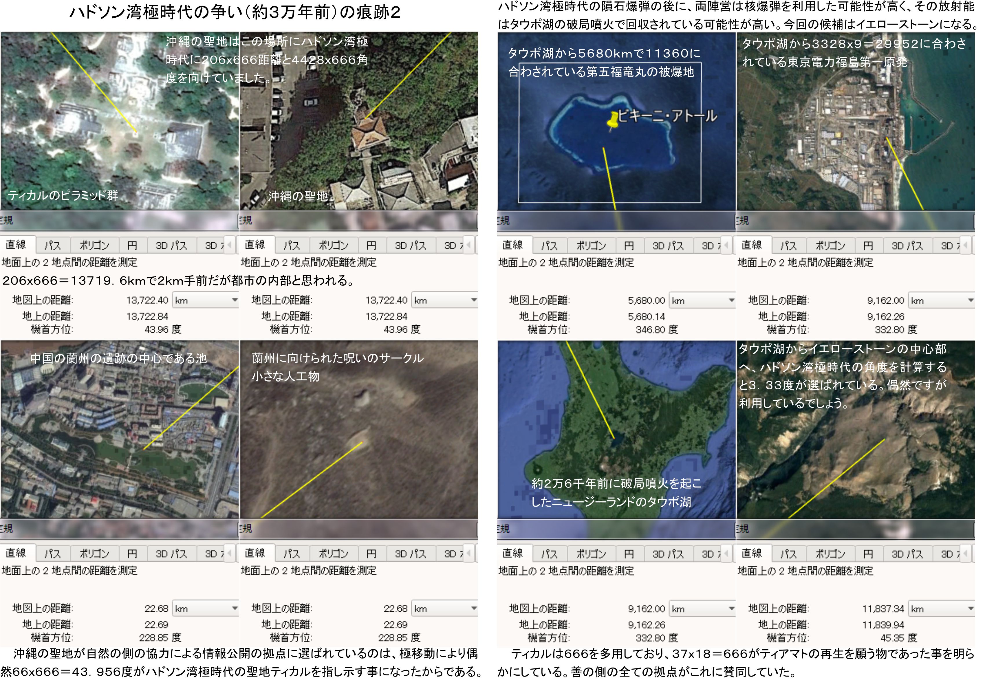 あと、ハドソン湾極時代の最後に津波にのまれたのがティカルの遺跡であり、666を表現してティアマトの再生を願っていた中南米にある当時の世界の中心的遺跡です。この遺跡に向けて様々な遺跡も666を組み込んでいます。