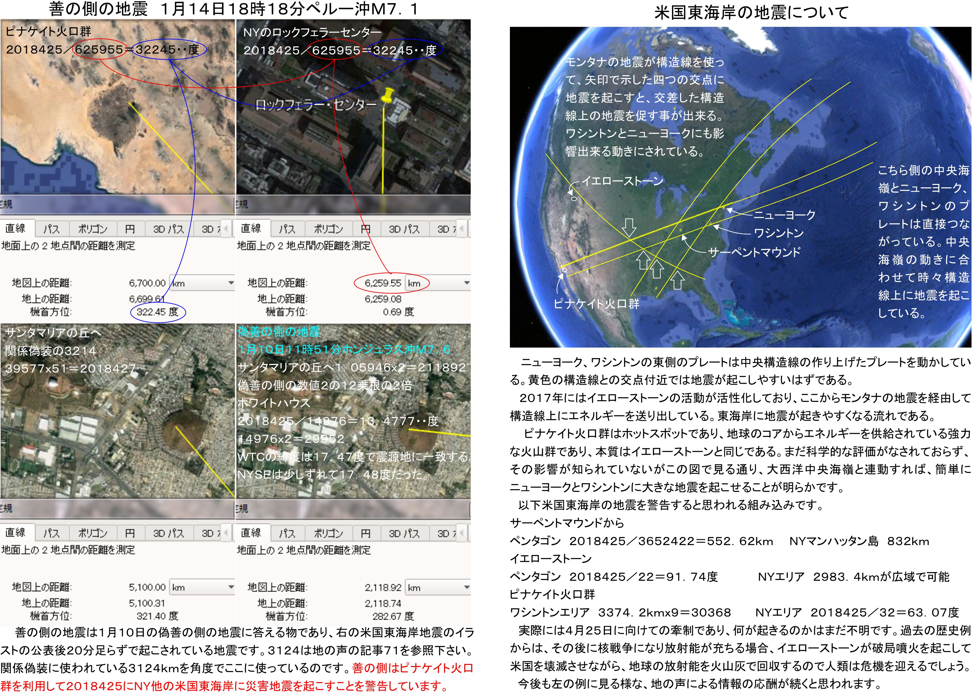 自然も情報を渡してくれています。2016年4月以降の地震を統計的に評価してきましたが、その結果で意図した情報を伝える方法が明確になっています。ホワイトハウスやペンタゴンに向けて、特定の数値の倍数になる位置や角度での地震を起こすのです。台風の9時の位置の中心なども日本と米国で使えていました。これらは統計的現実ですが、認められるようになるまでは無視されるだけでしょう。あり得ないの一言です。この記事にはこの種の情報をたくさん載せることになります。