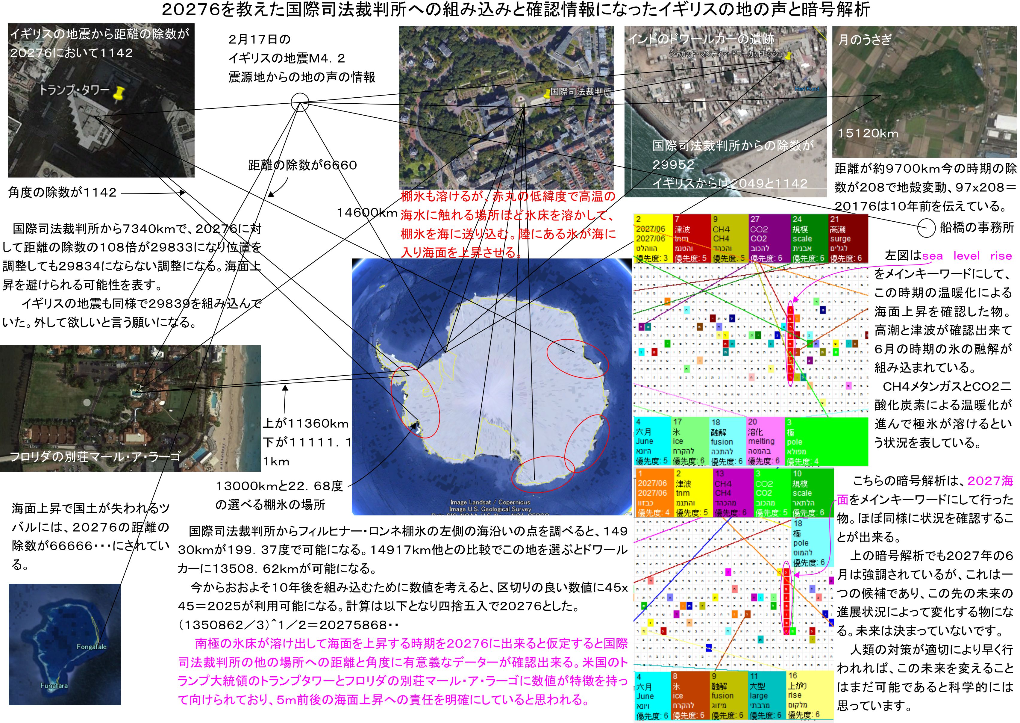 2027年6月に海面上昇の時期を選んだ組み込みはイラストに載せていますので参照下さい。暗号解析では、海面上昇と2027海面をメインキーワードにして行った物を載せています。ほぼ同様にこの時期の津波と高潮の発生を確認することが出来るのです。