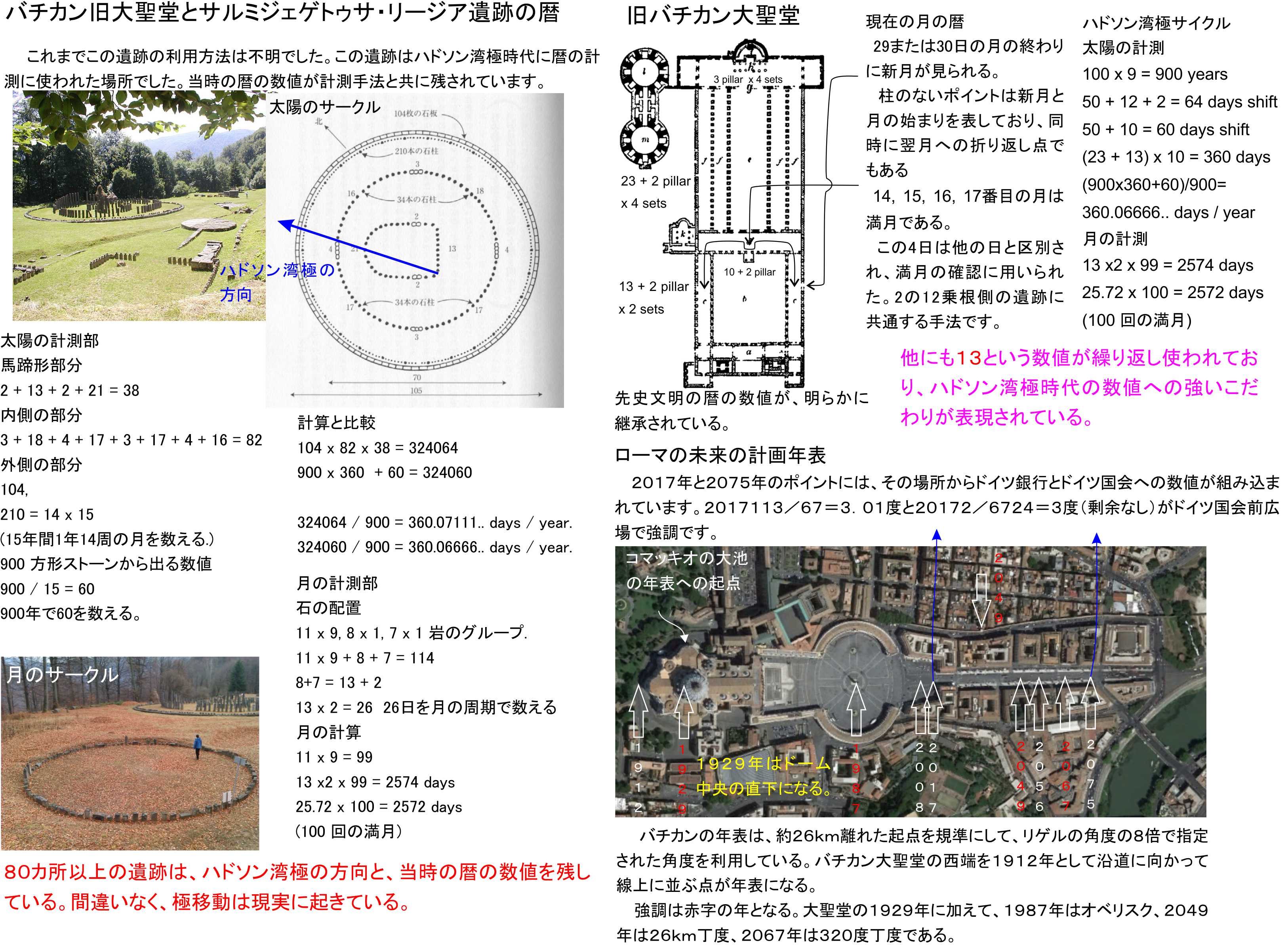 バチカン大聖堂についてはコメントしておきます。現在のバチカン大聖堂にはハドソン湾極時代の暦の数値は分からなくされています。証拠の残る旧大聖堂には、ハドソン湾極時代の暦の数値が満載でした。イラストに紹介している分です。
