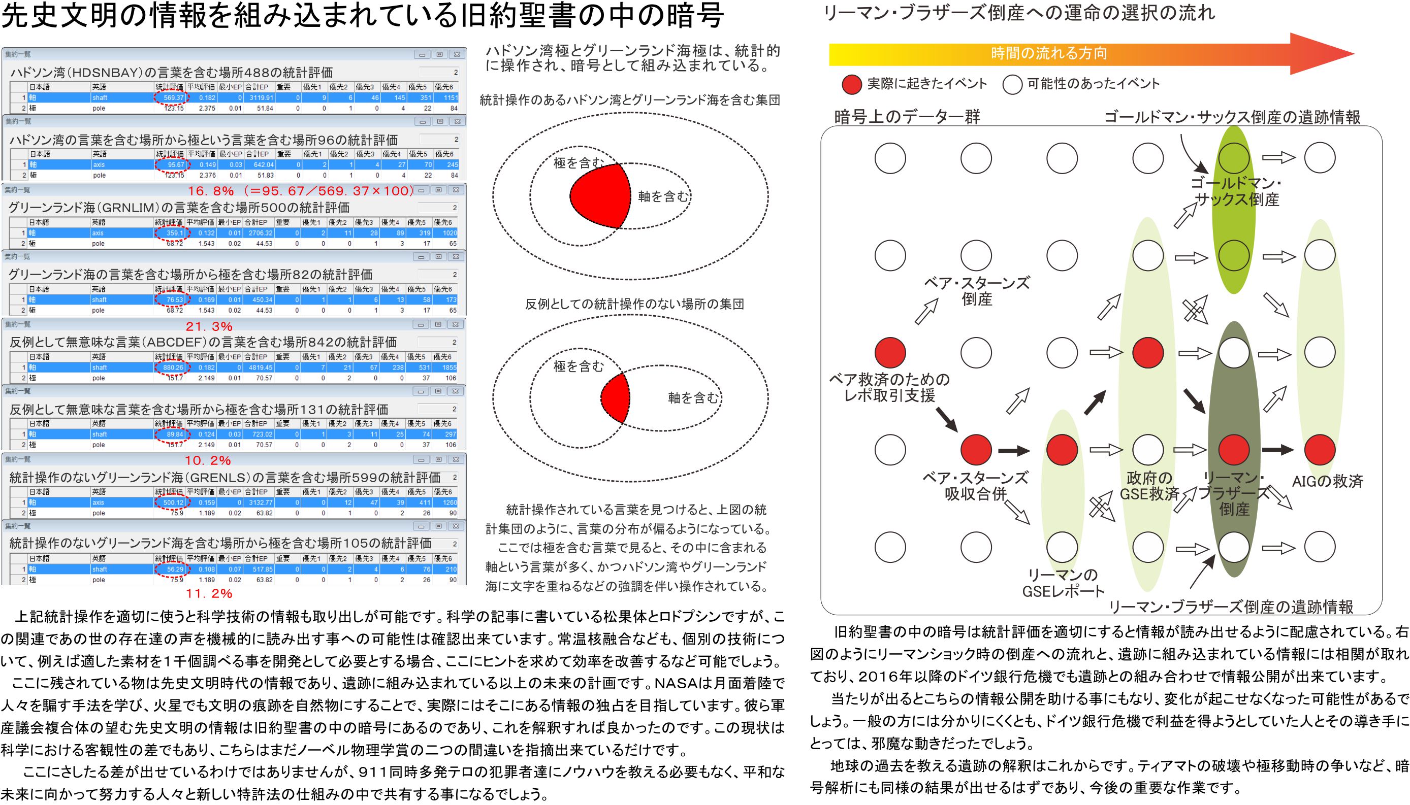 未来は複雑な計画になっていると思いますが、先史文明の人々が残してくれている旧約聖書の中の暗号には、遺跡とは異なる詳細情報が含まれており、今の状況を統計的に評価するとその先の未来の選択肢がある程度ですが見える状況です。