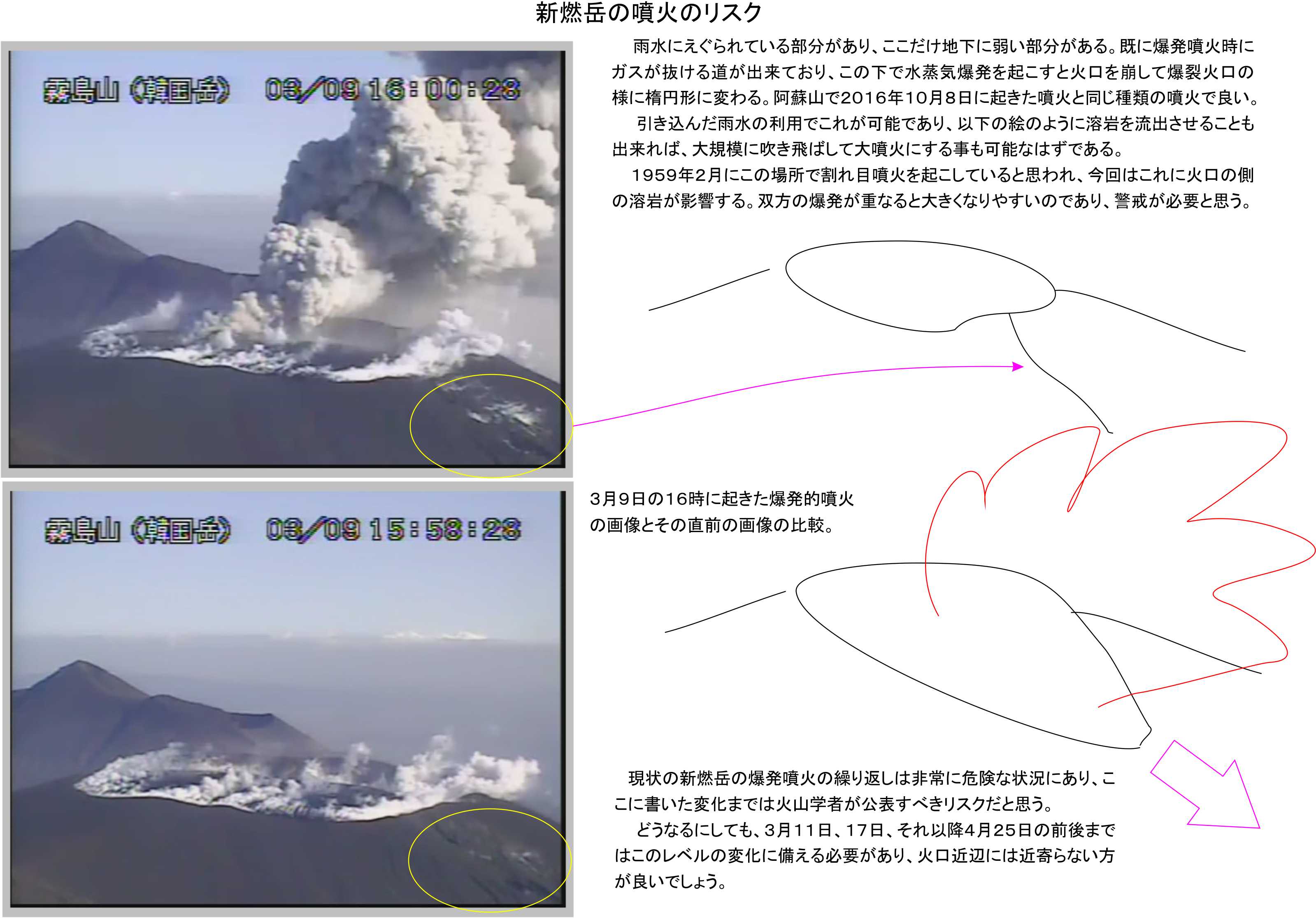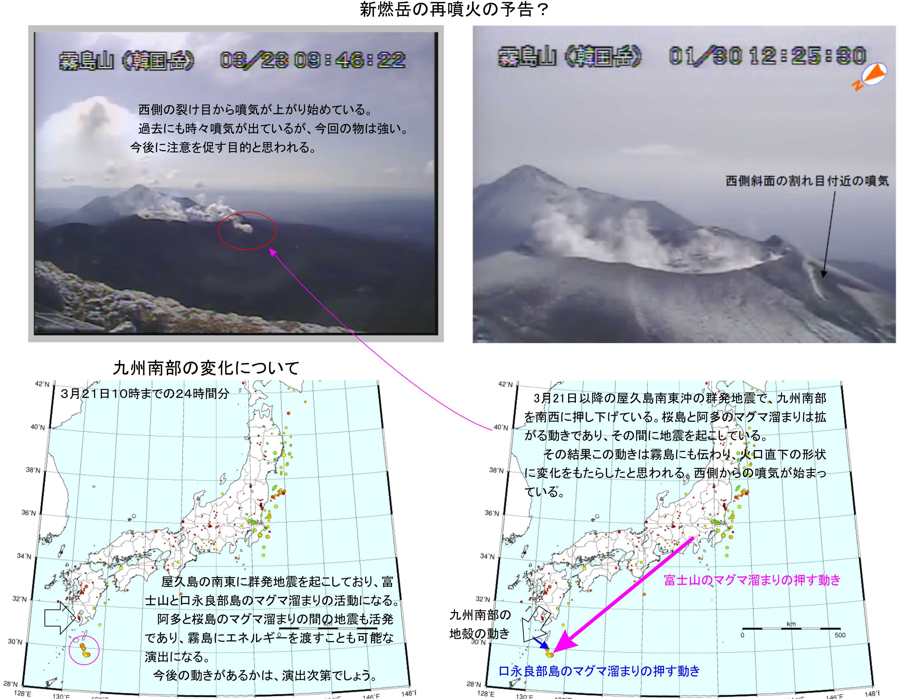2018321の春分の日に新燃岳への注目を伝えてきていました。薩摩硫黄島の火山性地震の増加で火口からの解析を促していました。