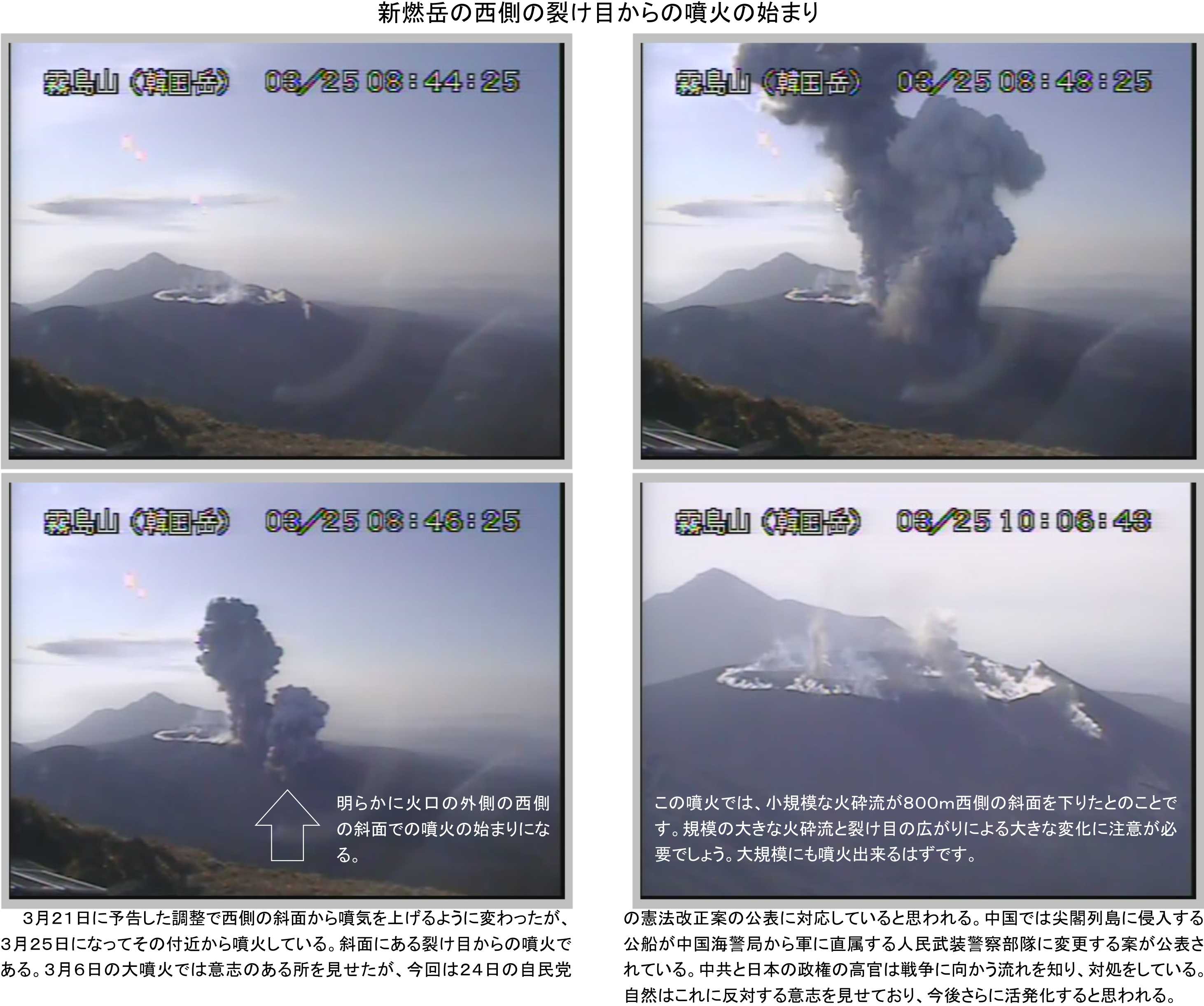 こちらは新燃岳の3月6日の大噴火を当てられていれば、もう少しこの情報を広められたと思います。現状ではそうしたくなかったという事になり、尖閣列島で自衛隊員が多数亡くなるまでは、多くの人々にとっては戦争のリスクを感じる事が出来ないのでしょう。