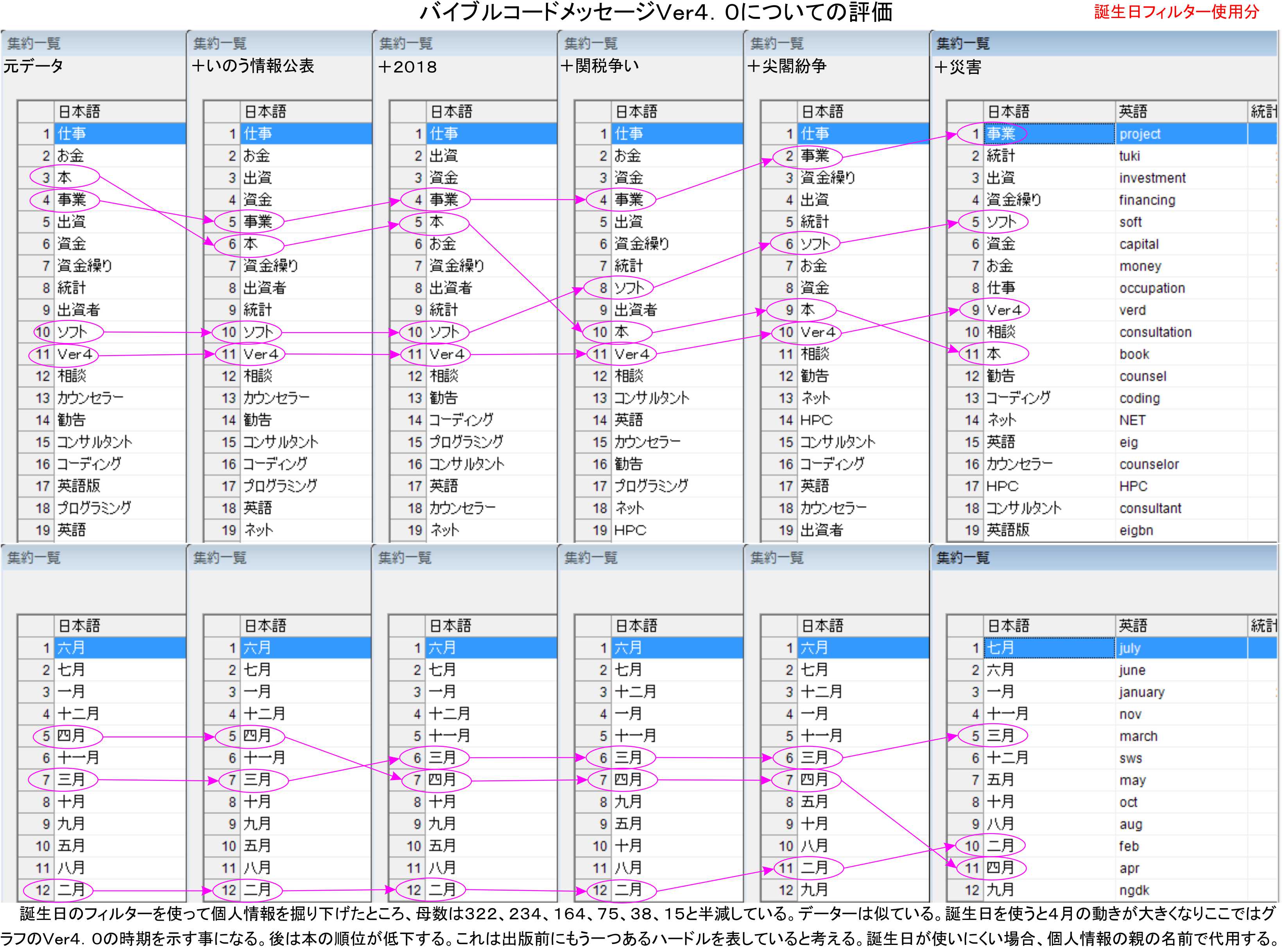 これに加えてバイブルコードメッセージのVer4.0では、主にフィルターという機能を使ってある時点における運命の分岐や選択肢を見る事が可能であるとして、事例を紹介してきています。