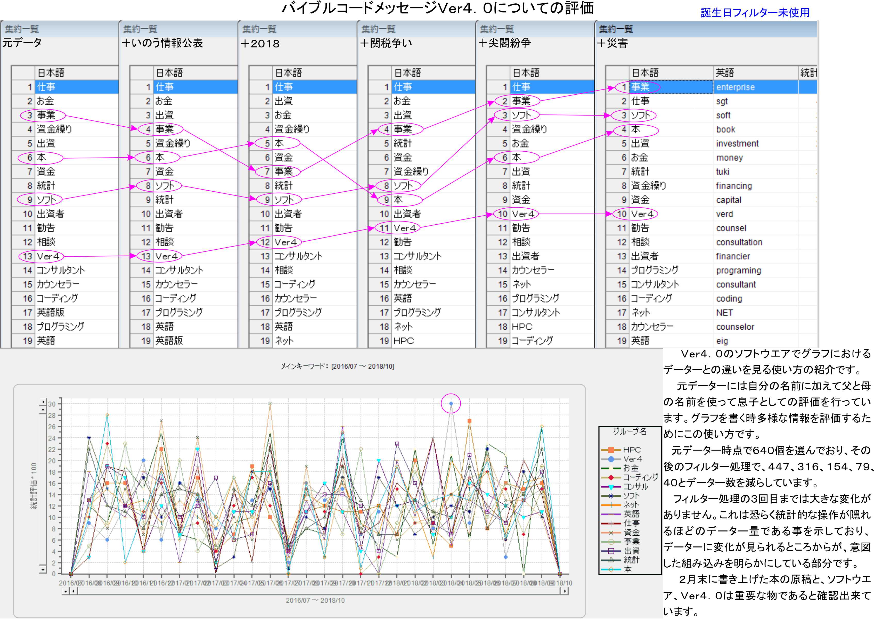 始めのデーターは誕生日をフィルターに使っていませんが、2月末に書き上げた本の原稿と、ソフトウエア、Ver4.0は重要な物であると確認出来ています。
