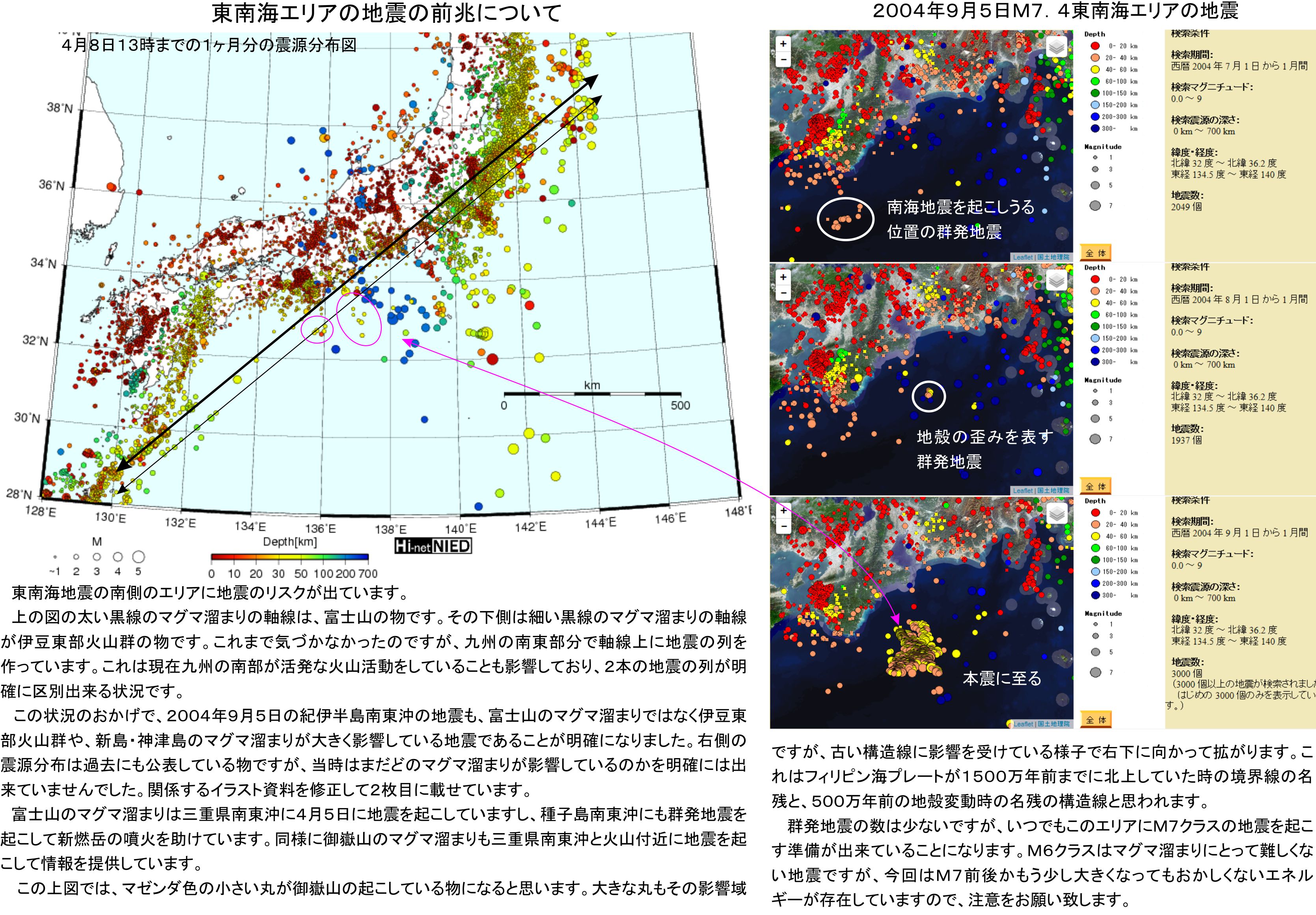 これと比較すると、2004年の紀伊半島南東沖の地震では、311地震と比較すれば明確な前兆と言える状況ではありません。