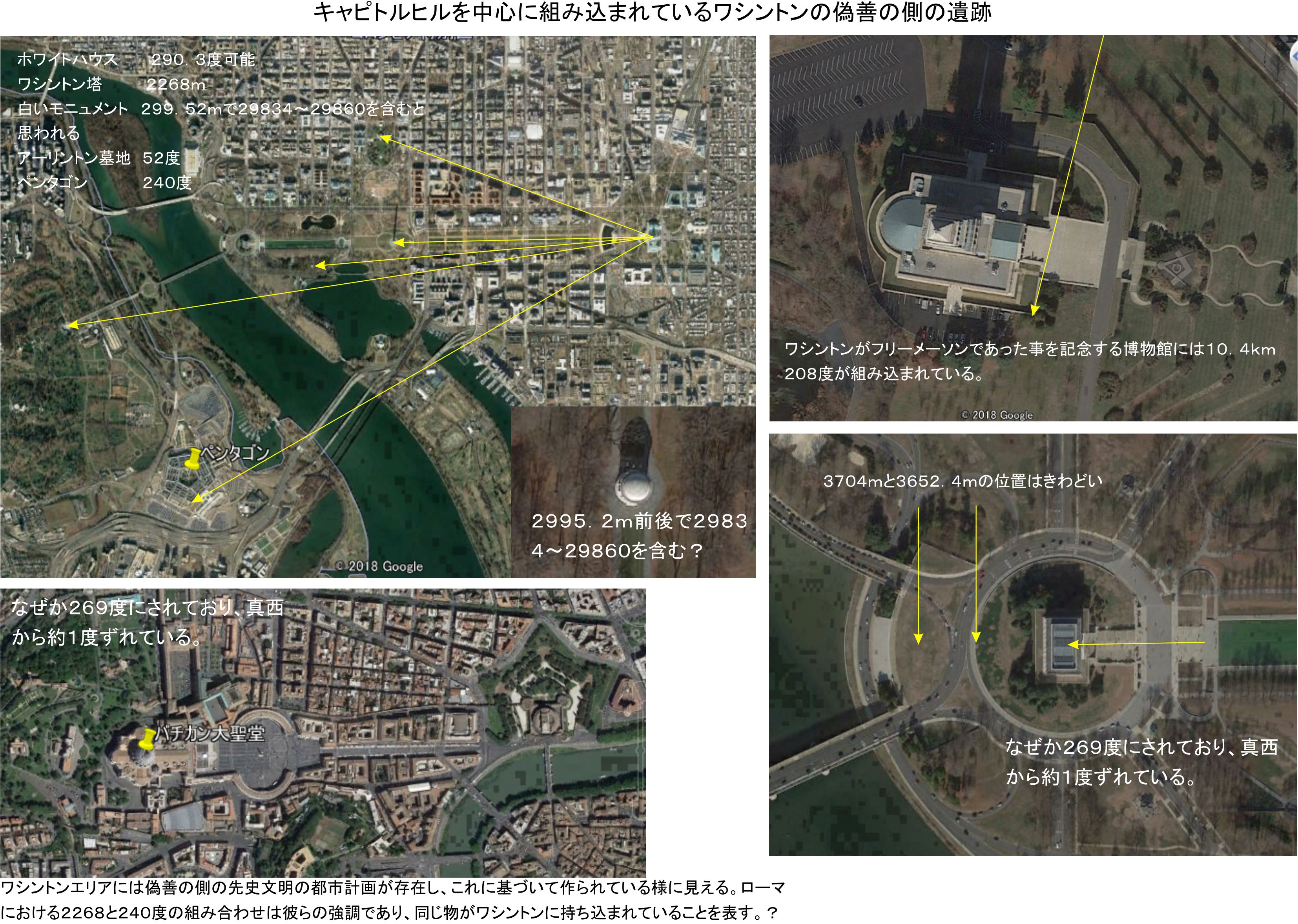 ここまで作業をすると、新しい都市のはずであるワシントンにも注意を向ける必要を感じました。始めから可能性を外すよりも念のために調べるべきであると言う事です。加えて2001911においての組み込みはペンタゴンで確認出来ており、先史文明の遺跡としての特徴を持つことになります。
