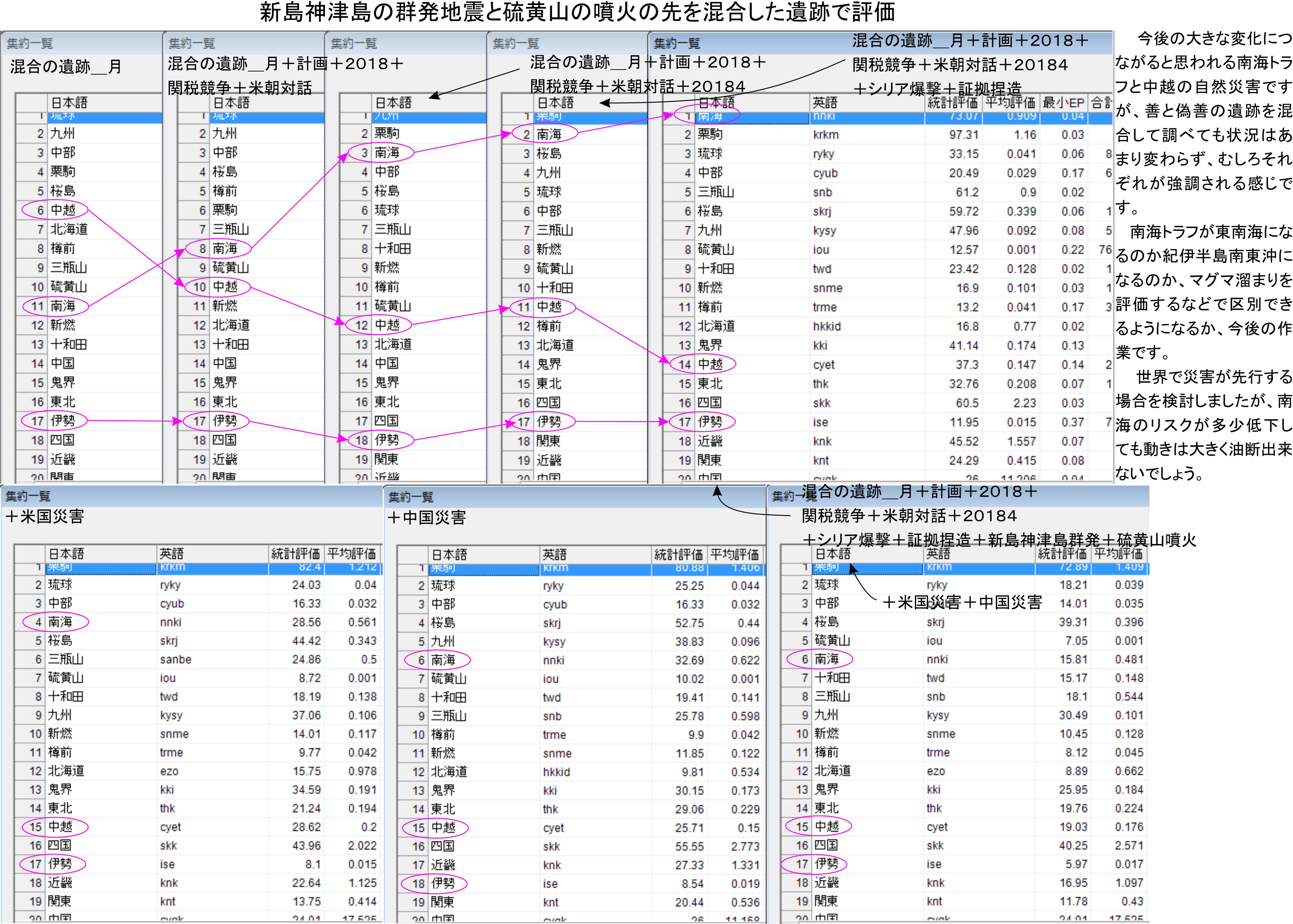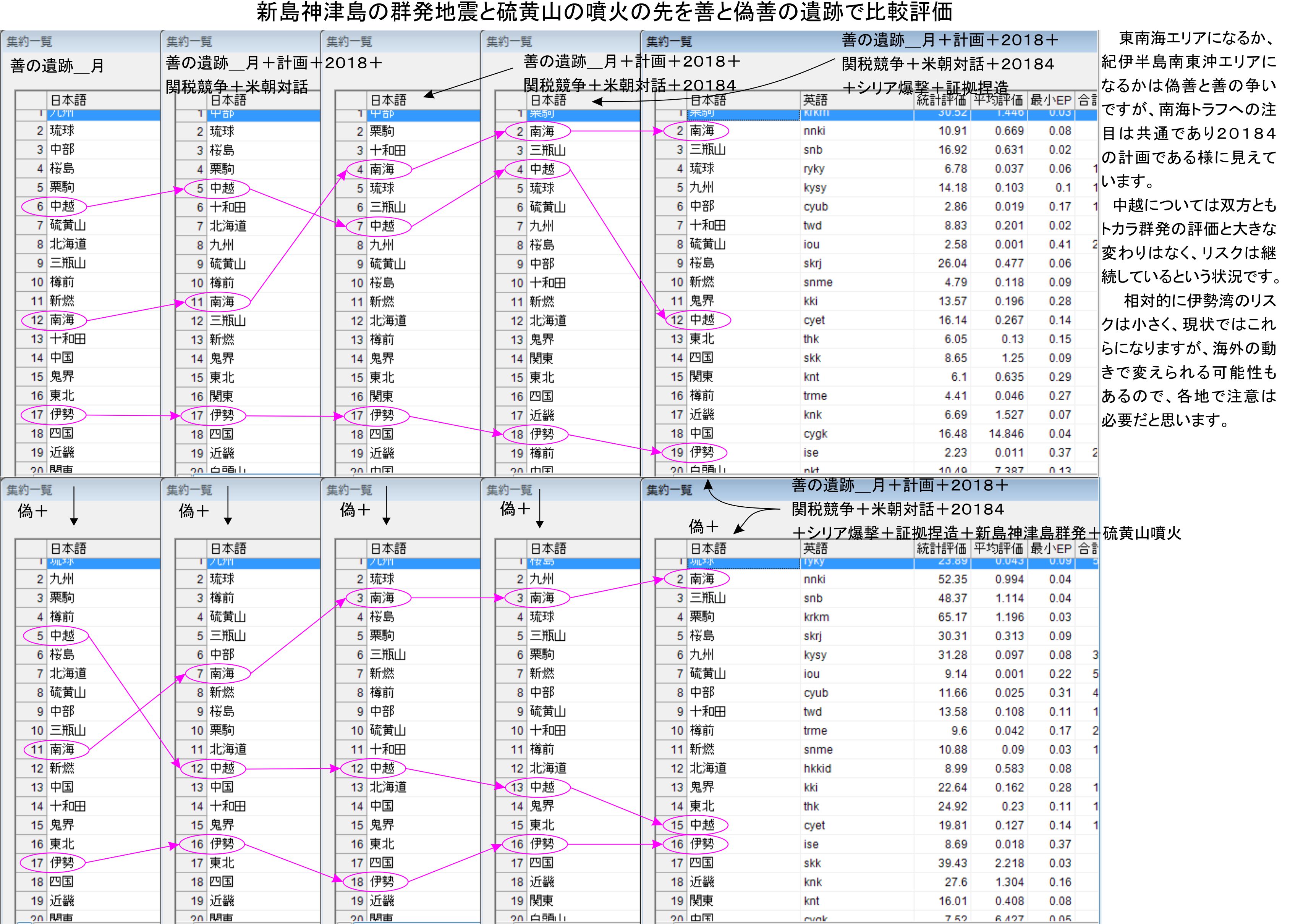 今後の大きな変化につながると思われる南海トラフと中越の自然災害ですが、善と偽善の遺跡を混合して調べても状況はあまり変わらず、むしろそれぞれが強調される感じです。