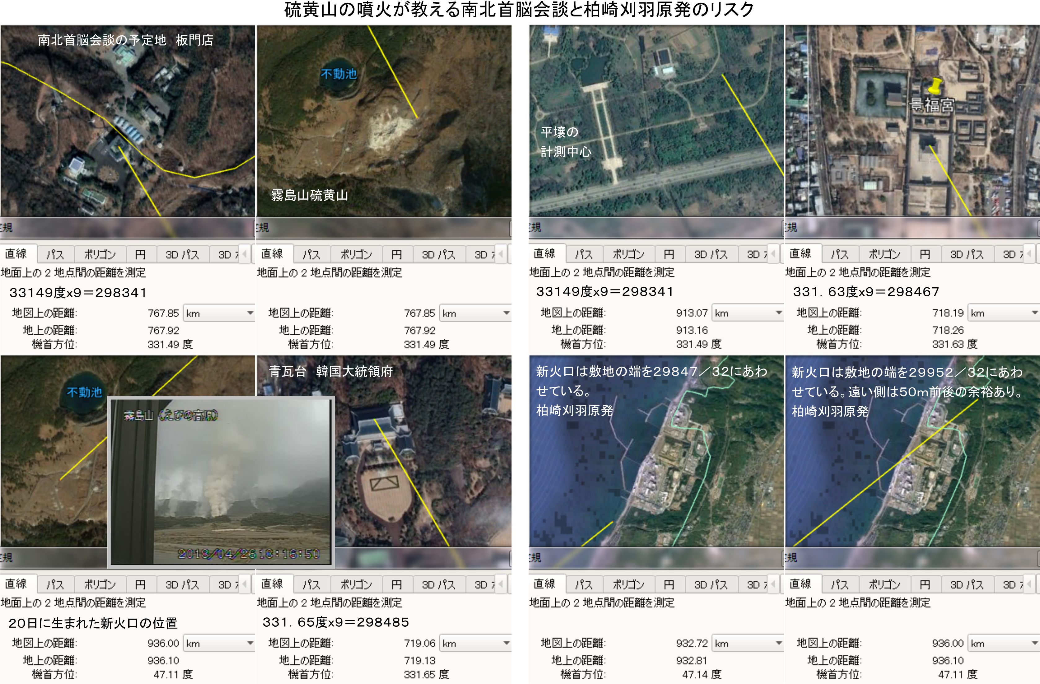 この意味ですが、同じ場所から複数のイベントを組み込んでみせるのは、様々な調整がないと難しいからです。新火口の誕生によりマール・ア・ラーゴだけでなく、平壌とソウルにもメッセージを送っていますし、柏崎刈羽原発にもリスクの警告を伝えているのです。同時にこれをするには非常な困難があるはずであり、霧島山硫黄山からほとんど直線上にソウル、板門店、平壌を重ねるのみならず、柏崎とフロリダにも調整を向ける必要があるのです。この中の多くの場所の選択に干渉出来なければ、このレベルの組み込みの重なりはあり得ないでしょう。