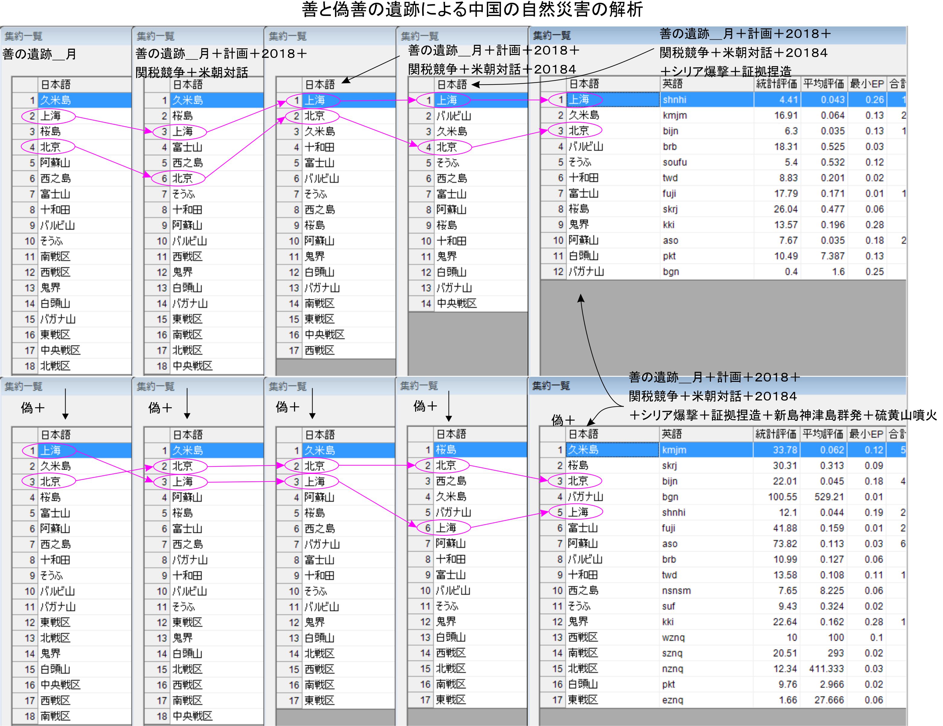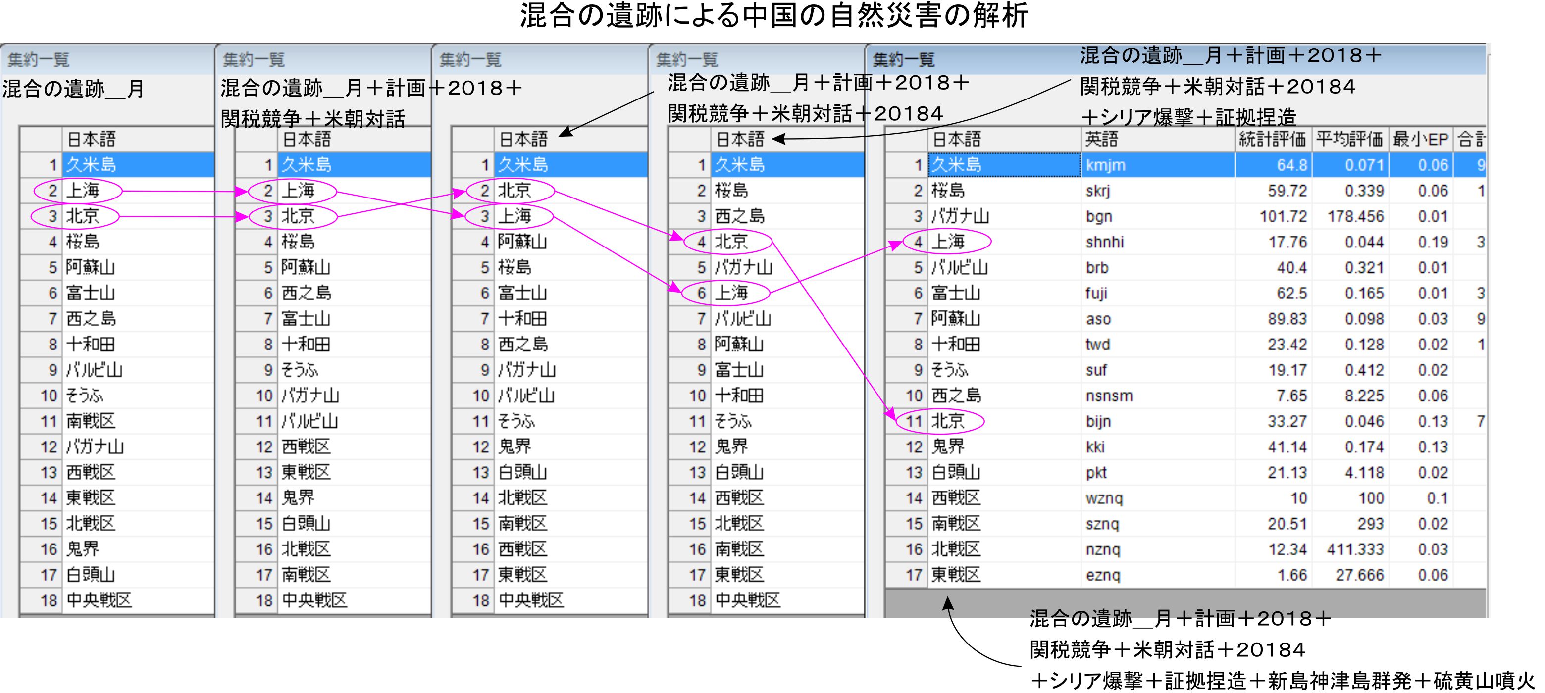 混合で評価を行った結果、北京に動きが明確に出ていました。実際に動くかは未知数ですが、混合の条件にしたことで、善の側の予定であった北京の動きが結果に出やすくなっていた様子です。