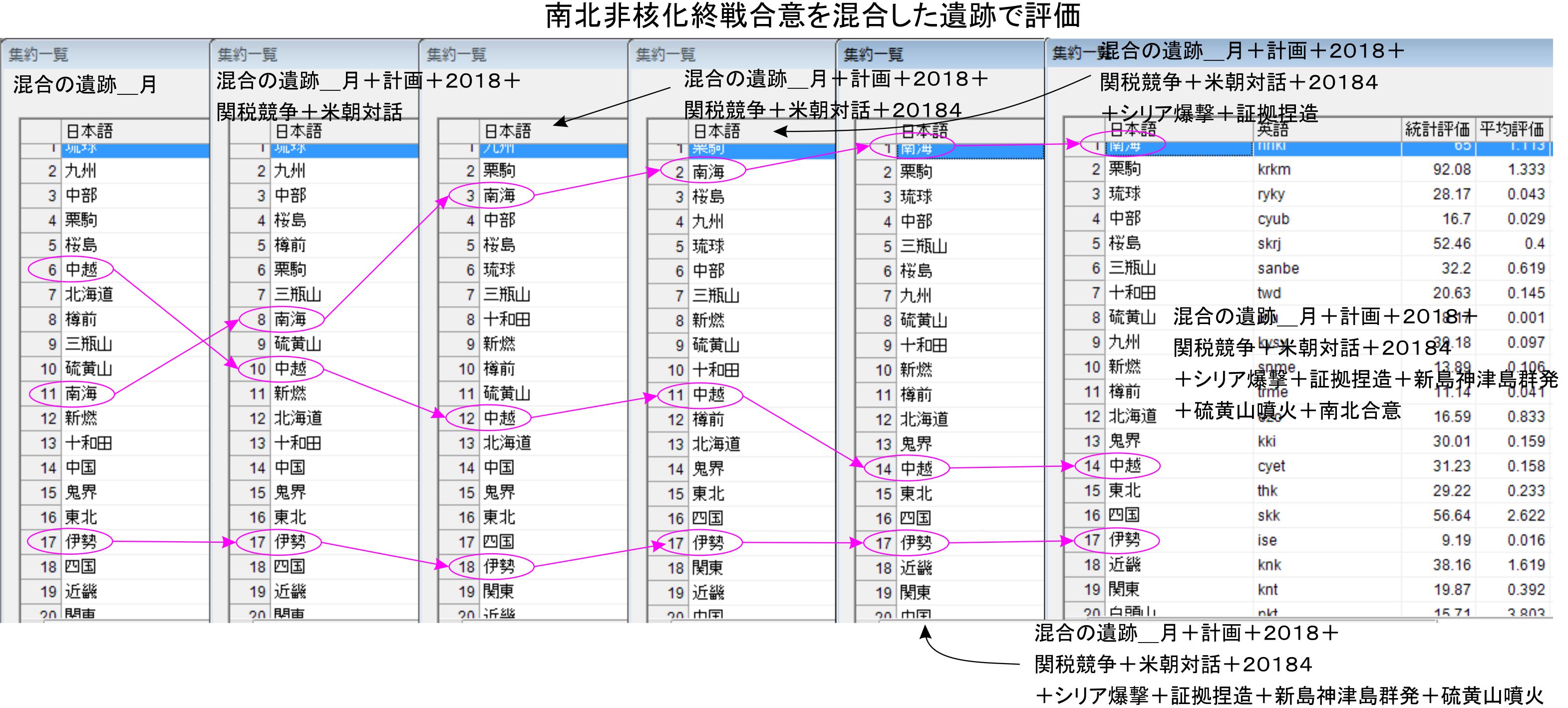 2018427における南北朝鮮の非核化合意と終戦合意を受けて、暗号解析側にも追加修正が必要になりました。この評価の結果は多くを変える物ではありませんが、米国のニューヨークと関連するクセンテンクの火口湖の評価を大きく動かしていました。その結果で20185も含めて影響が出やすくなるレベルの変化と思われます。関連する評価はイラストで一通りをあとで紹介します。北京にもそれ以下ですが変化は見られています。