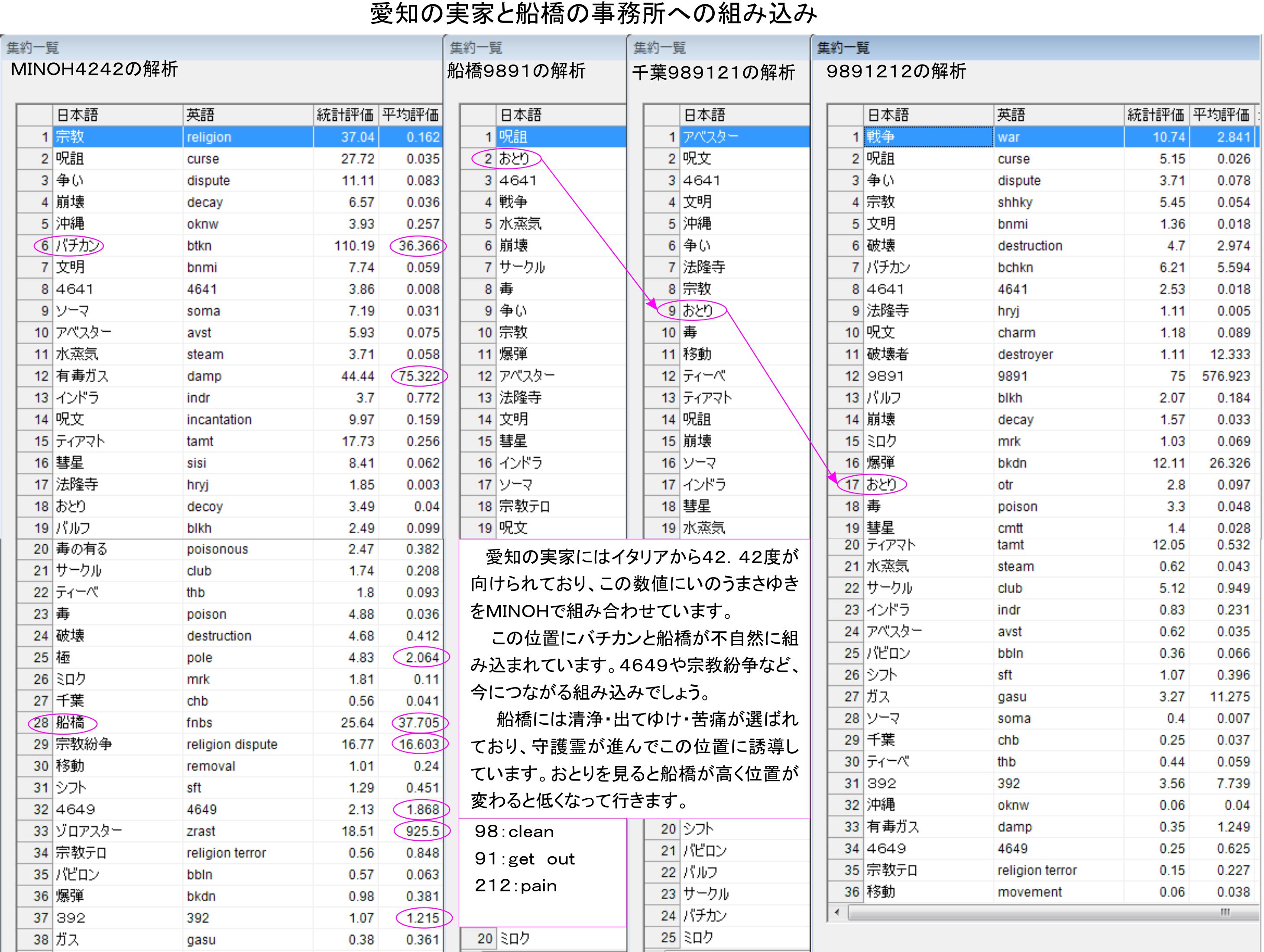 今回は自分でも驚きました。イタリアの4242を自分の名前に組み合わせて、普通に解析をしただけです。いのうまさゆきをMINOH、+4242でイラストに結果を載せています。