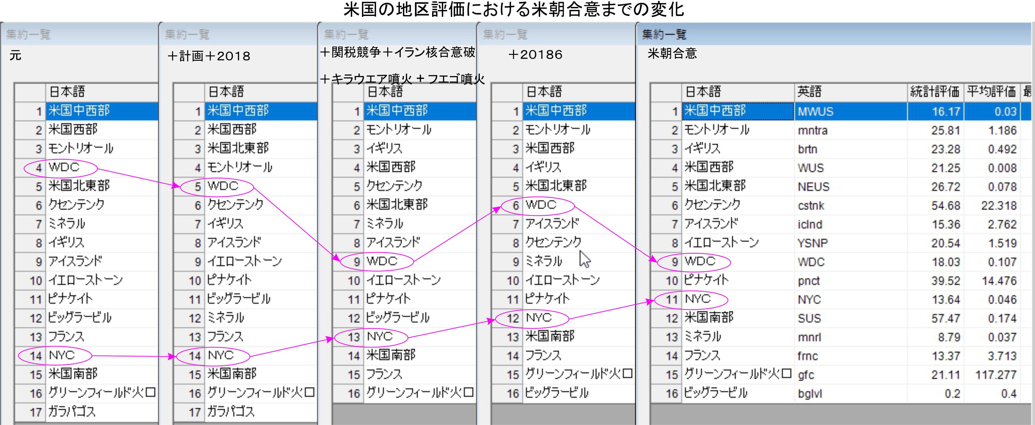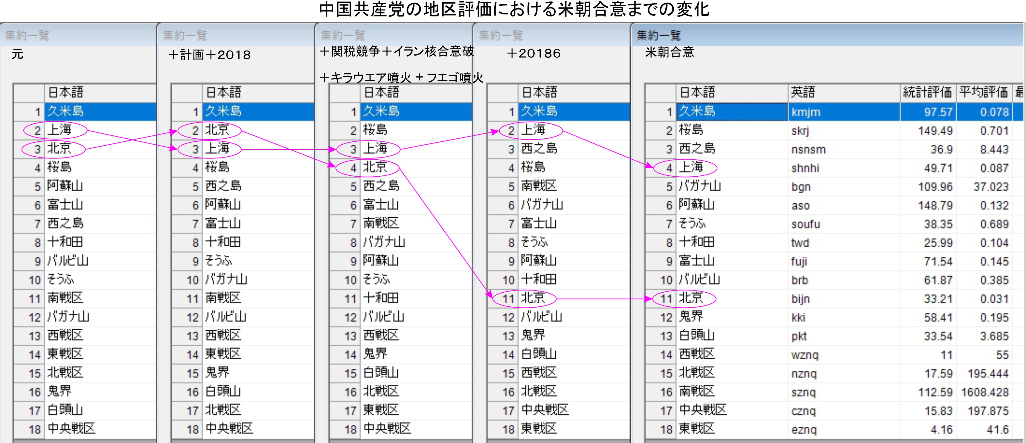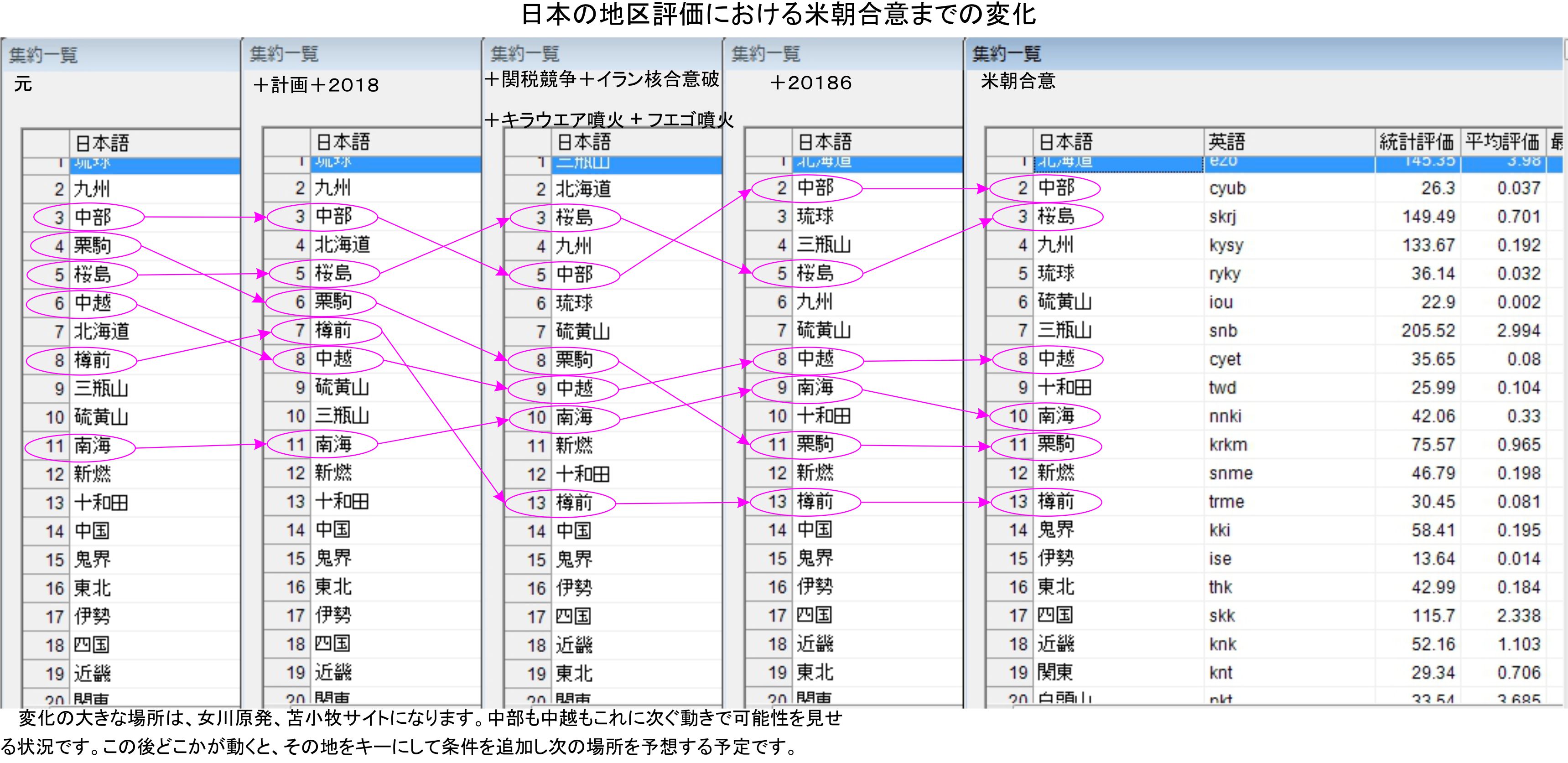 Ver4.0での自然災害の評価を日本と米国、中国で米朝合意後に対して行いました。今朝の千葉県北西部の地震はアメリカと中国を組み込んでいますが、日本向けは相変わらずであり、本日に向けた物は乏しい状況でした。女川原発に201861xを組み込んでいますが、その他ではクセンテンクの火口湖に2018614でビッグラービルの丘に2018628です。