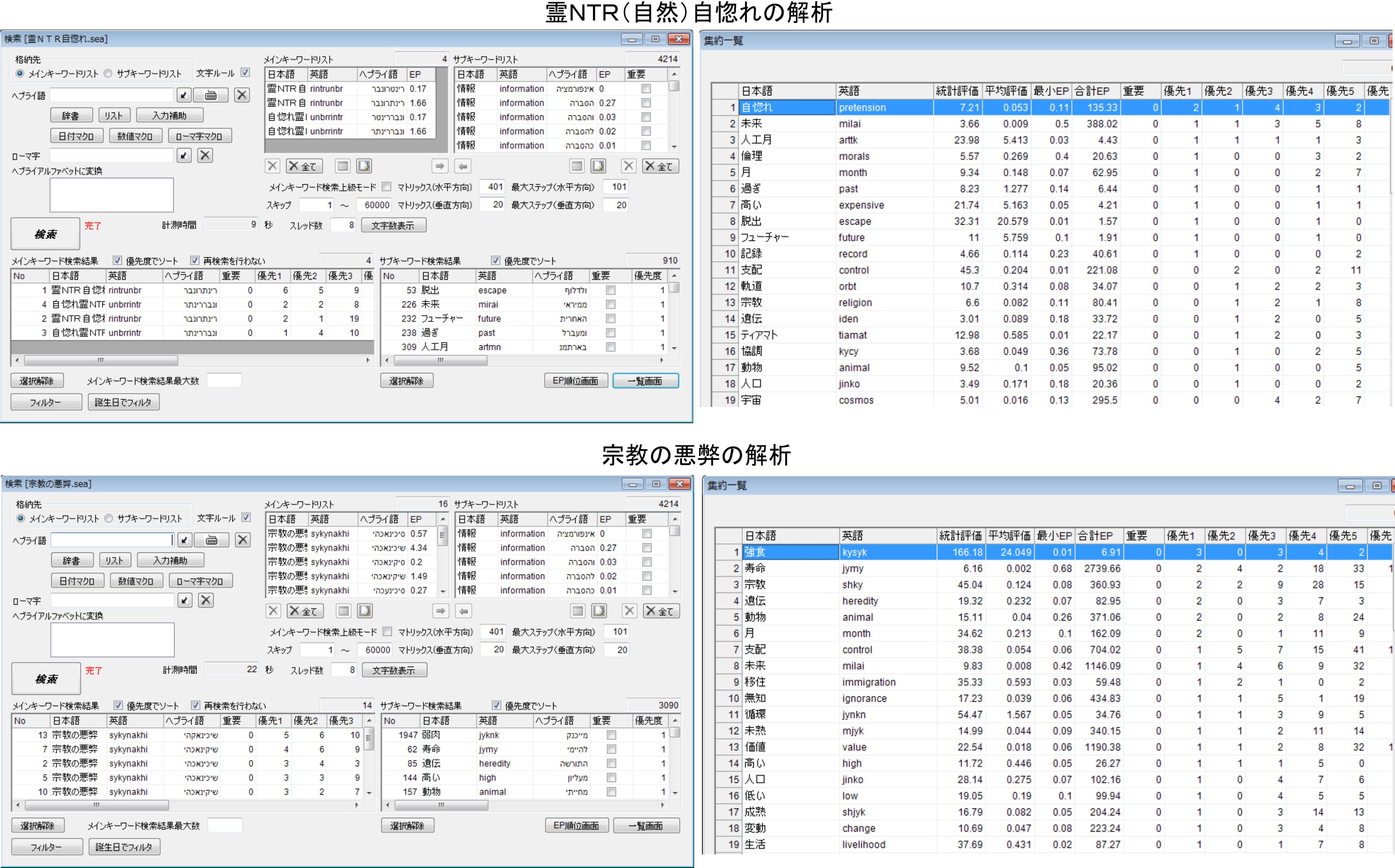 メインキーワードを「ティアマト再生」に選んで解析をしました。その内容を3つに時の流れで処理しています。フィルター処理で時代の条件を加えて変化を見られるようにしています。