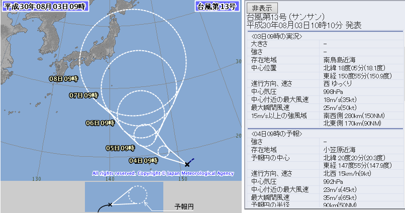 台風13号が発生し、この後急速に発達して日本海溝を小笠原諸島から北上する形でフィリピン海プレートと太平洋プレートを調整します。位置情報の解析も明日以降は台風12号の消滅に合わせて必要になります。