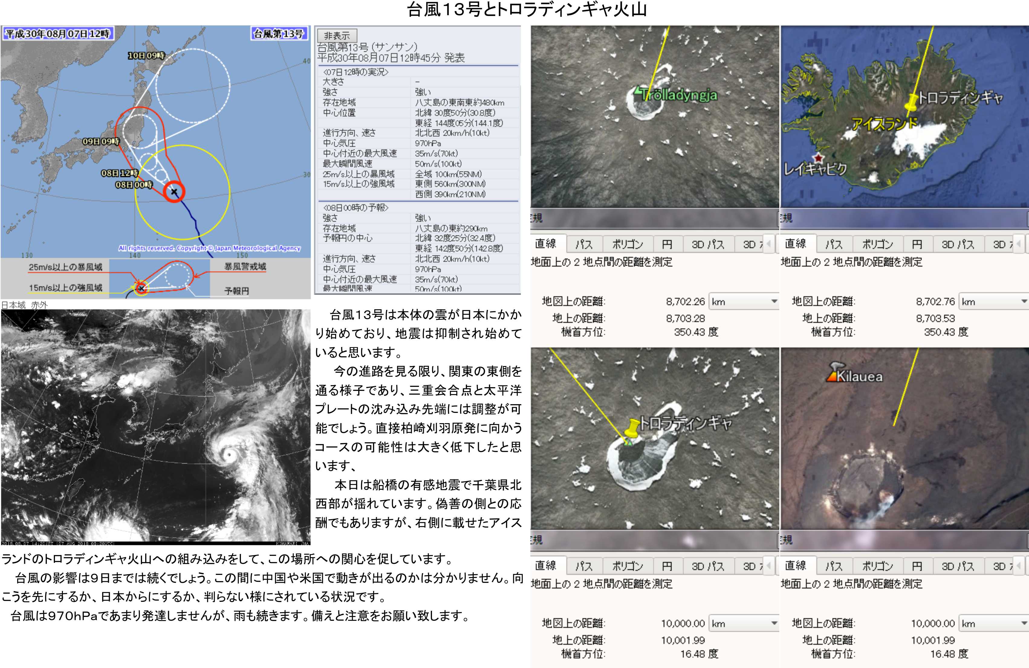 この例だけだとまだ信じにくいと思いますので、本日の地震の組み込みと、台風13号の組み込みを続けます。