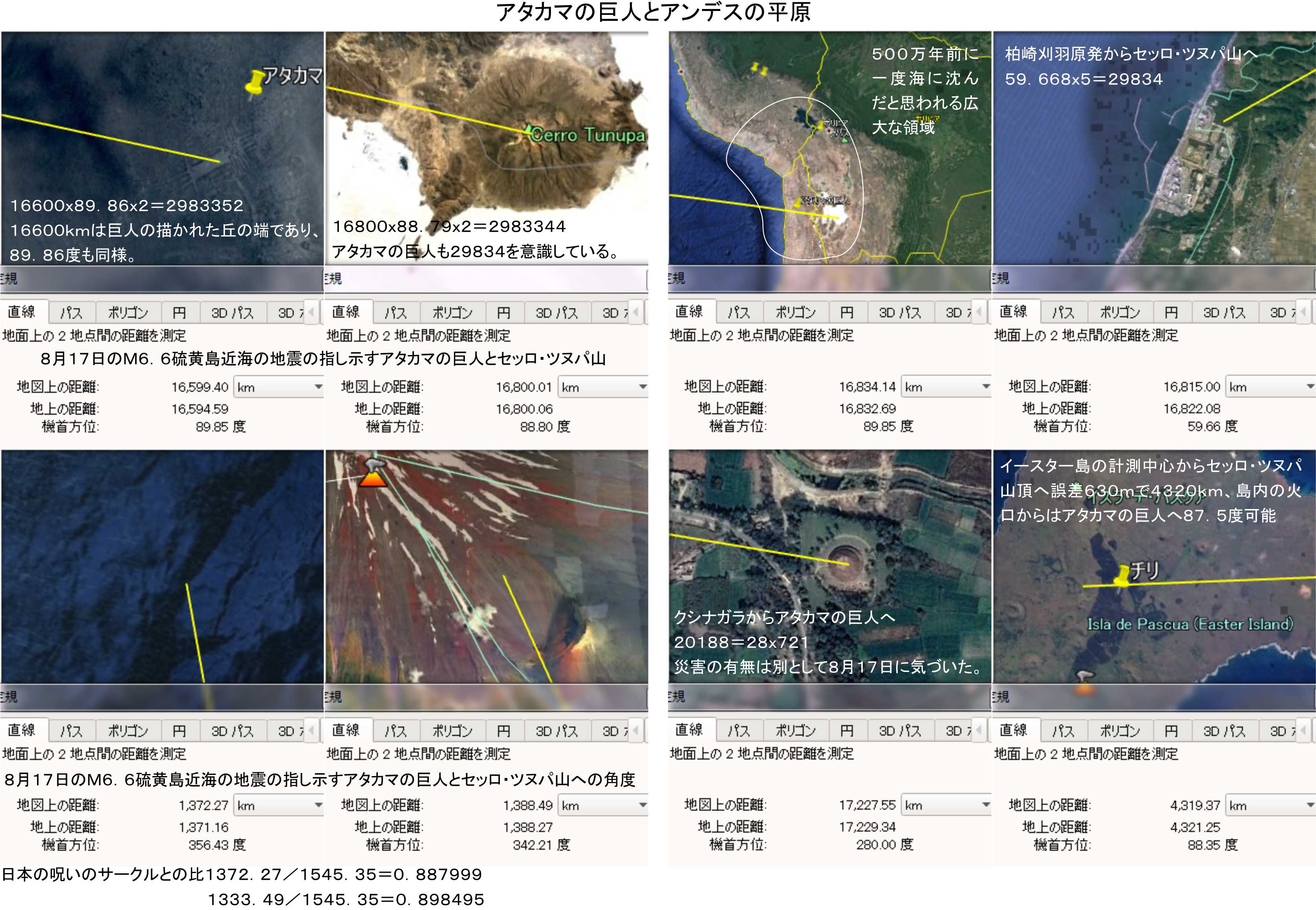 今回の地震は太平洋プレートの沈み込み先端と富士山宝永火口の下端に、日本の呪いのサークルとの比を通じてアタカマの巨人とセッロ・ツヌパ山を角度で指し示しています。