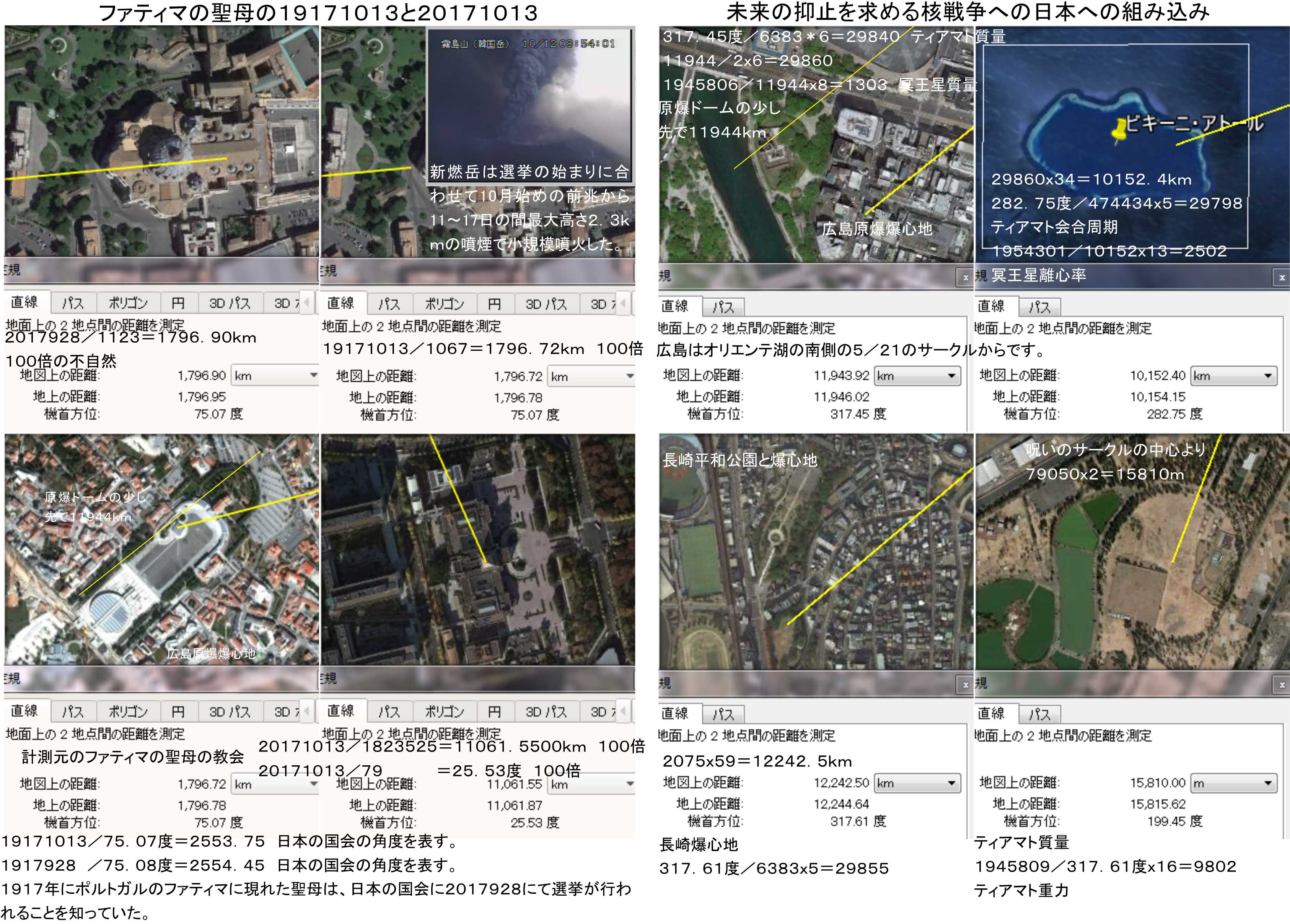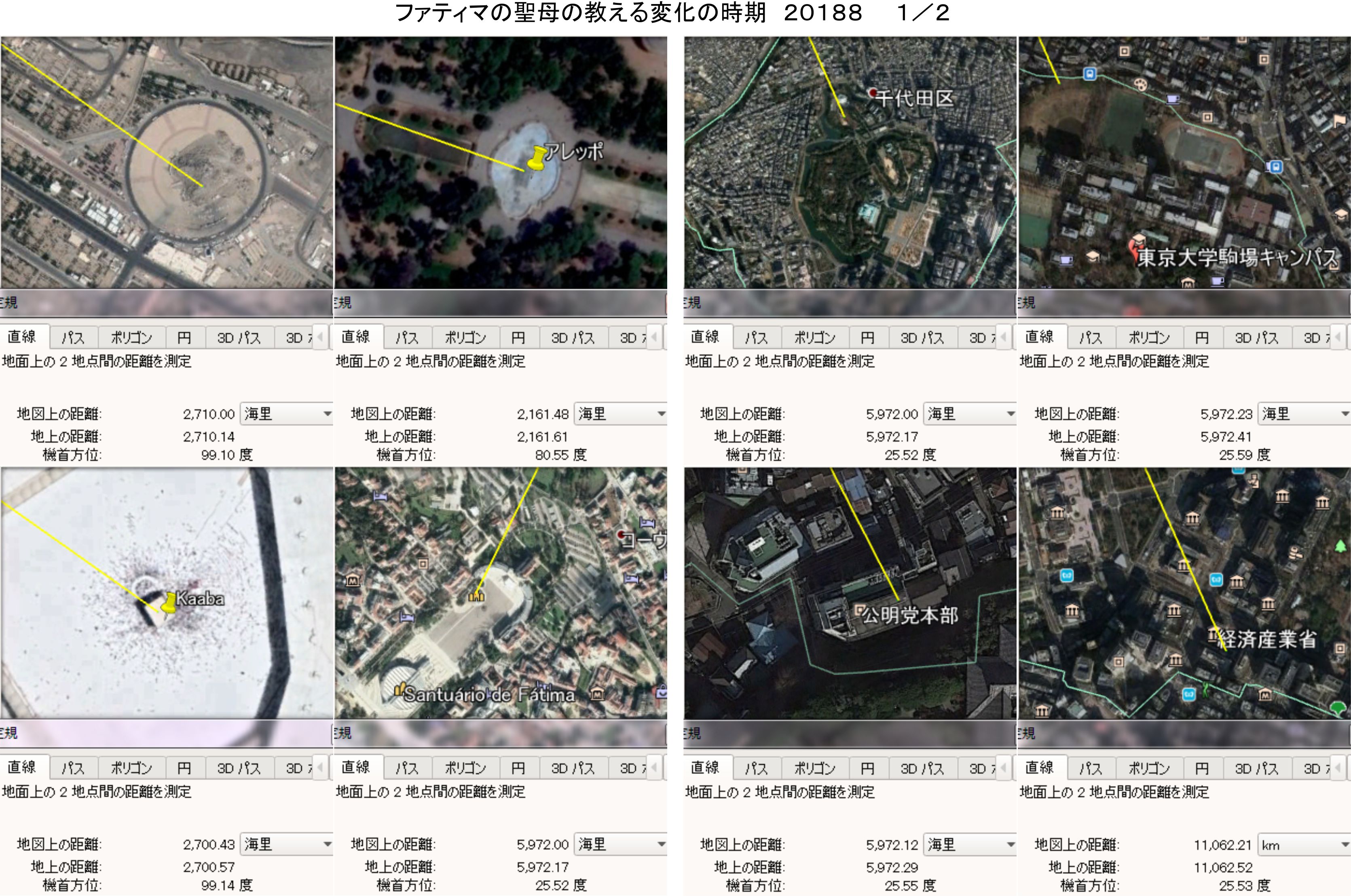 正直なところ何とも悔しい程ですが、ファティマの聖母の教会から、日本の首相官邸など主要な官僚組織に11062.21kmが組み込まれており、2011311x5.5にされていた事を、今回の検討で気づきました。前秋の検討時にたった500mの差に気づかなかったのです。5.5倍という中途半端な数字ではありますが、この時点で地殻変動としての2011311の使用を考慮していなかった事が原因です。