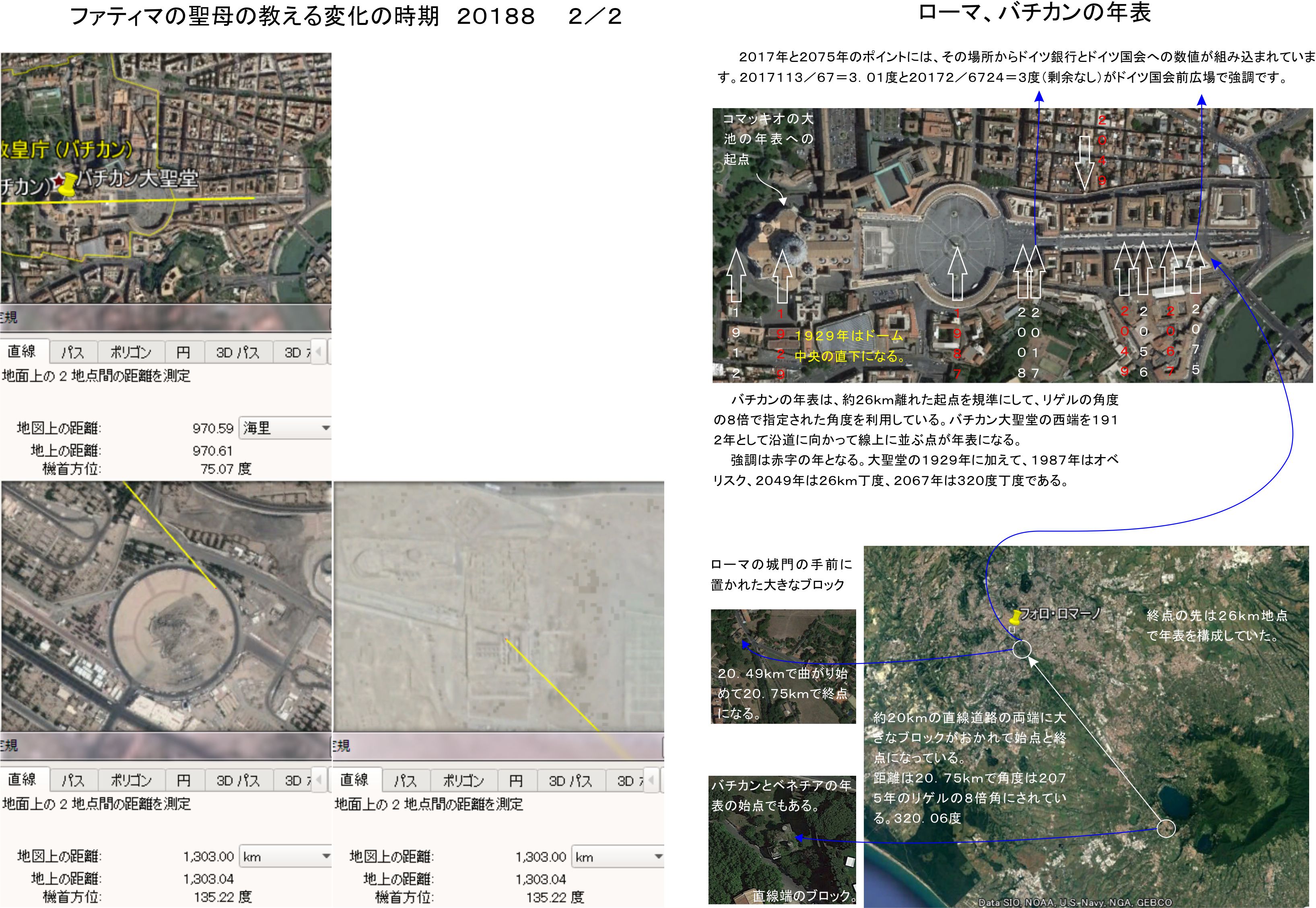 バチカンには先史文明時代に作り上げられた、今の時代を表す未来の年表が存在しています。この年表では2067年が偽善の側の重要な数値として強調されていますが、善の側は遺跡では2062年を選ぶのです。この位置に2018826と地殻変動の数値104x2が組み込まれているのでした。