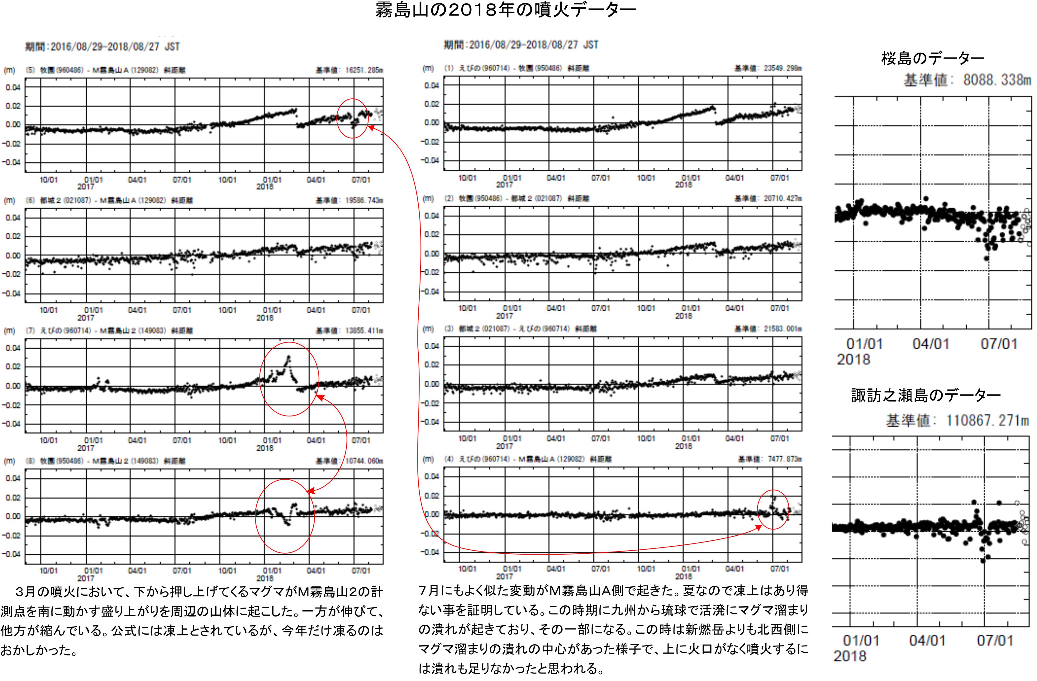 2018年の噴火もよく似ており、今回は計測点が増えたおかげで、前兆現象と呼ぶに相応しいM霧島山2のデーターが明確に出来ています。今後の良い参考例になるでしょう。下から浮き上がってくるマグマの科学として、現実を表しているでしょう。