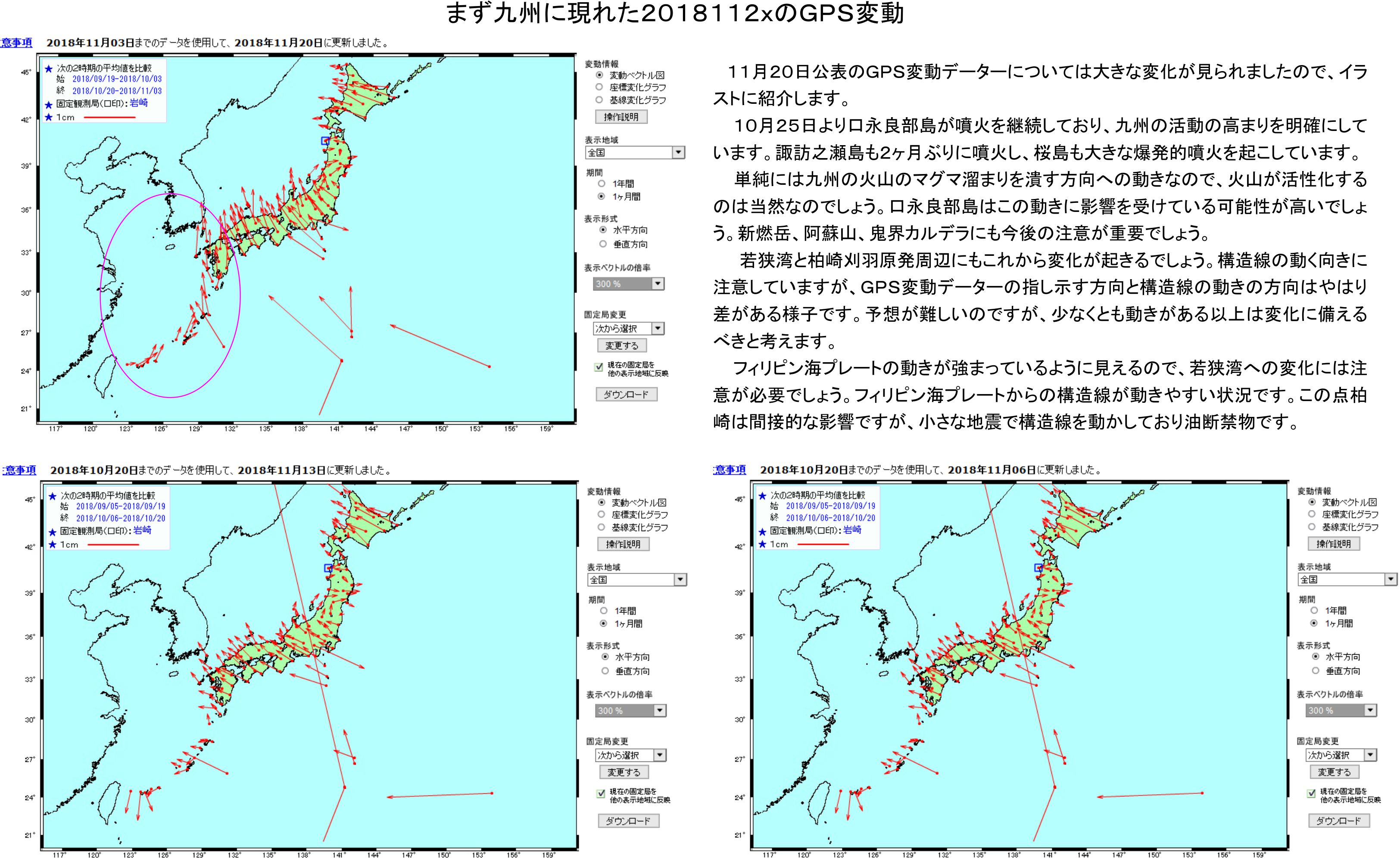 11月20日公表のGPS変動データーについては大きな変化が見られましたので、イラストに紹介します。