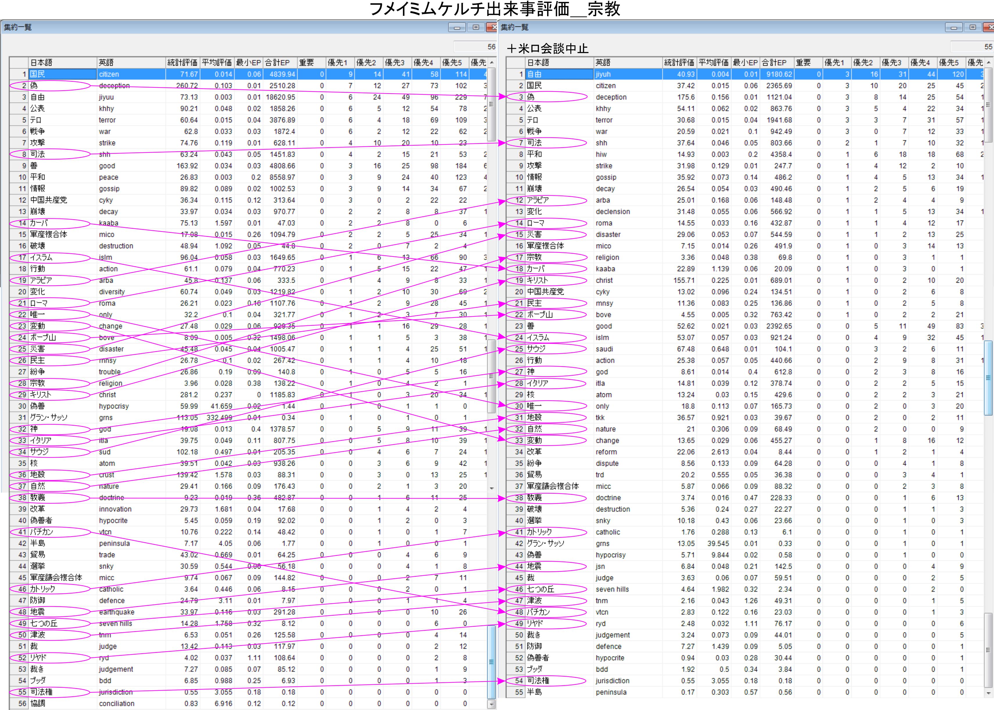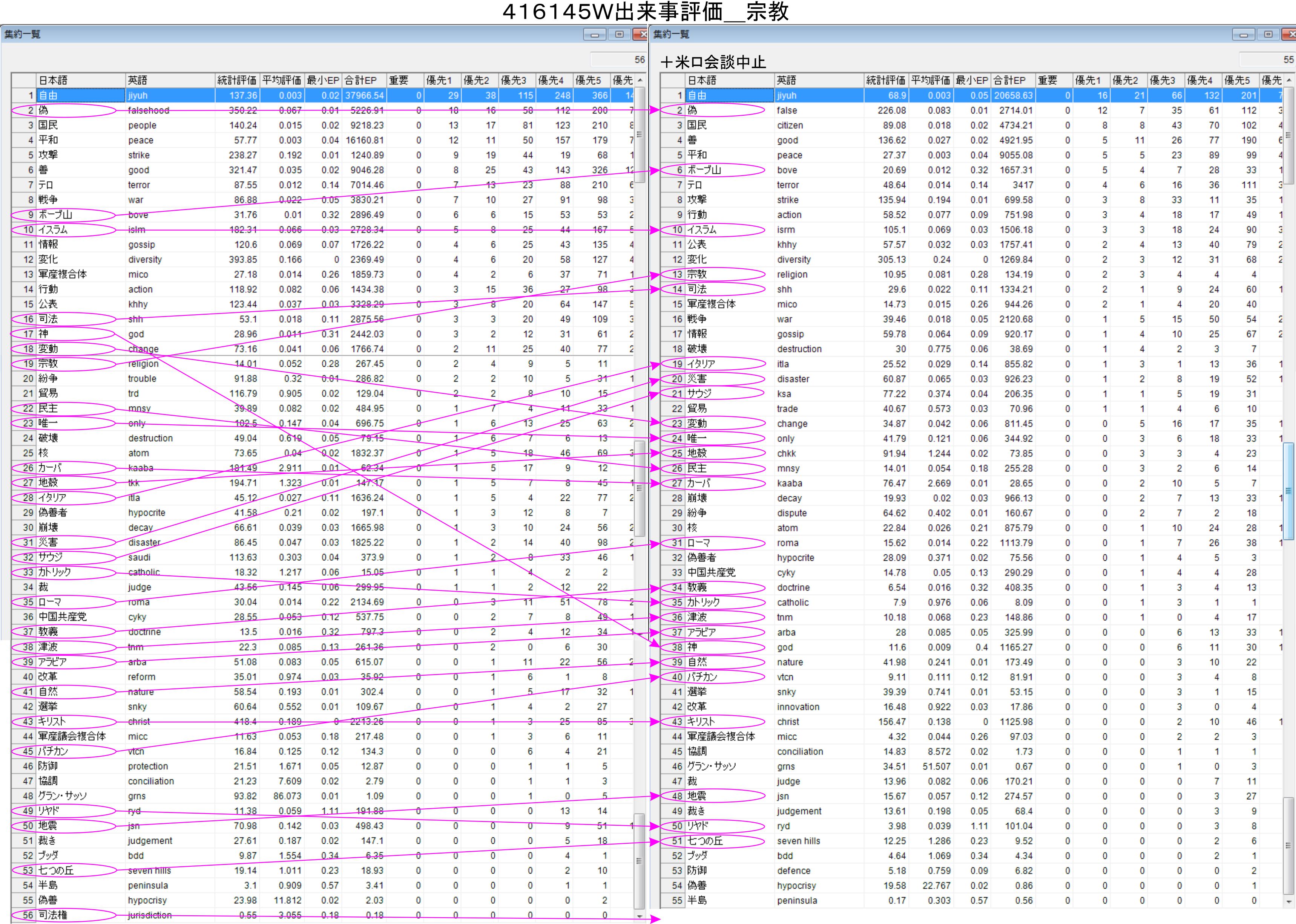 この中ではメインキーワードにROMA/VTCNとKSAが含まれる事になるので、場所としてのローマとサウジの評価が不正確になります。この部分はフメイミムケルチと416145Wを評価する中に入れての解析です。