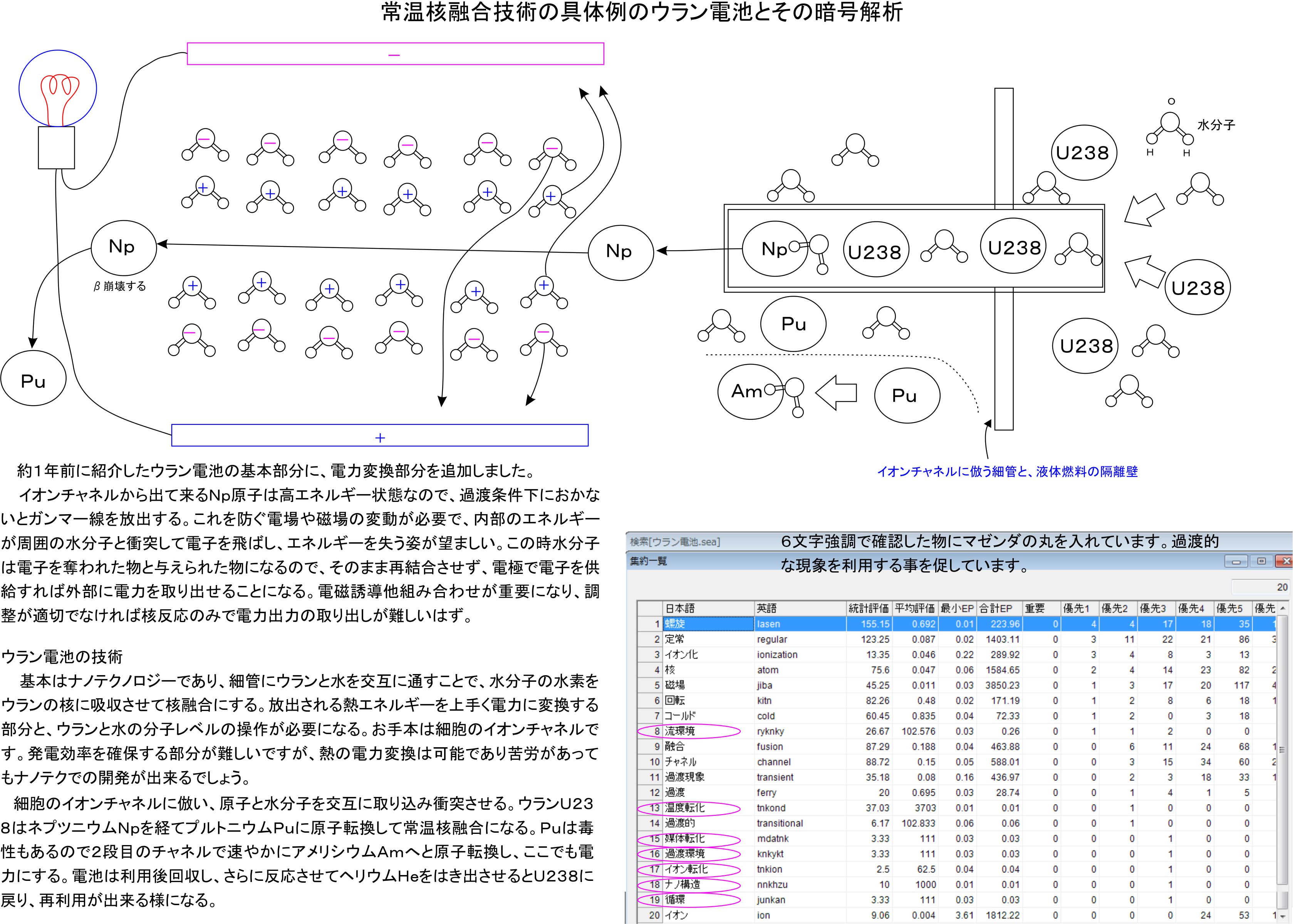 ウラン電池に関連しては、今回暗号解析に6文字での強調に意味のあることが判明したので、この関連を利用してウラン電池の具体的な設計概念を確認しました。この部分は公表しても大きな影響はないと思うのでそのまま公表します。