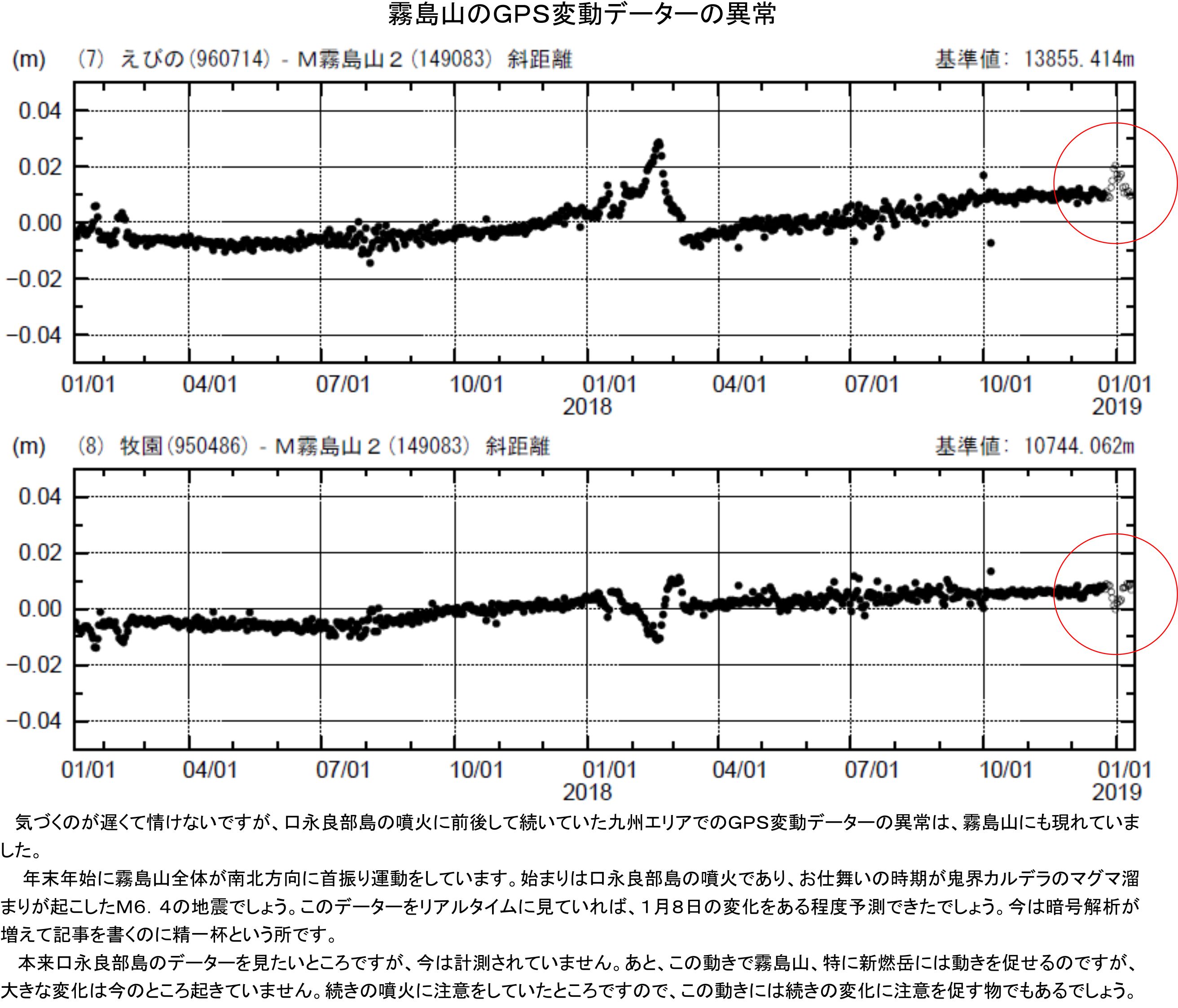 本日はもう一つ情報があり、年末年始にかけて霧島山でGPS変動が起きていたことが明らかになりました。イラスト参照下さい。