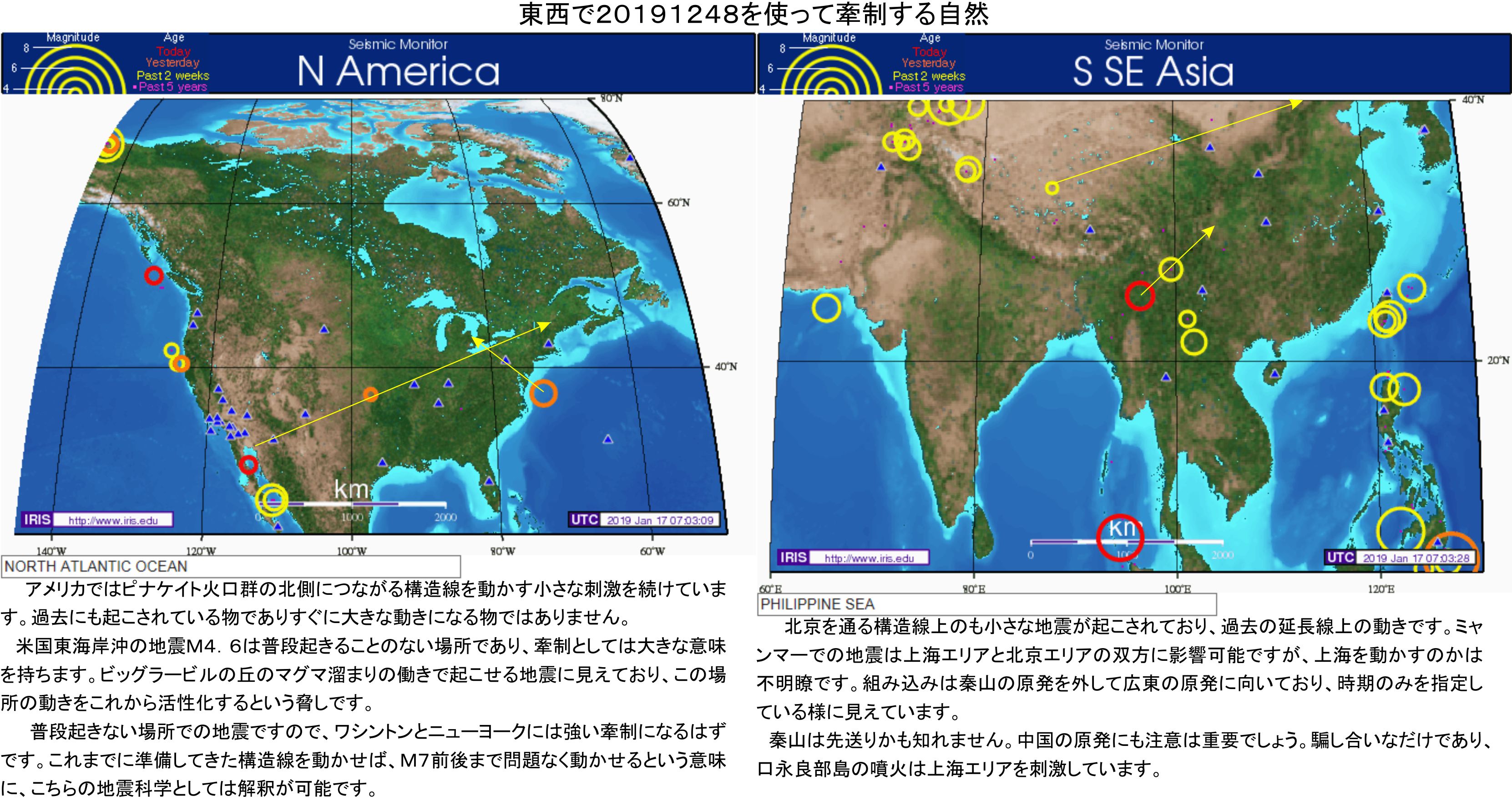 日本の物は皇居の20191248に意味があるかどうかでしょう。2019+104x12=20191248です。地殻変動が12回起きるほどの状況という事ですが、延々と外してきた今の状況下では誰にも顧みられることのない情報に等しい状況でしょう。自分たちで選んできた結果であり、死者を無駄に増やす動きになれば大きく批判をする所です。