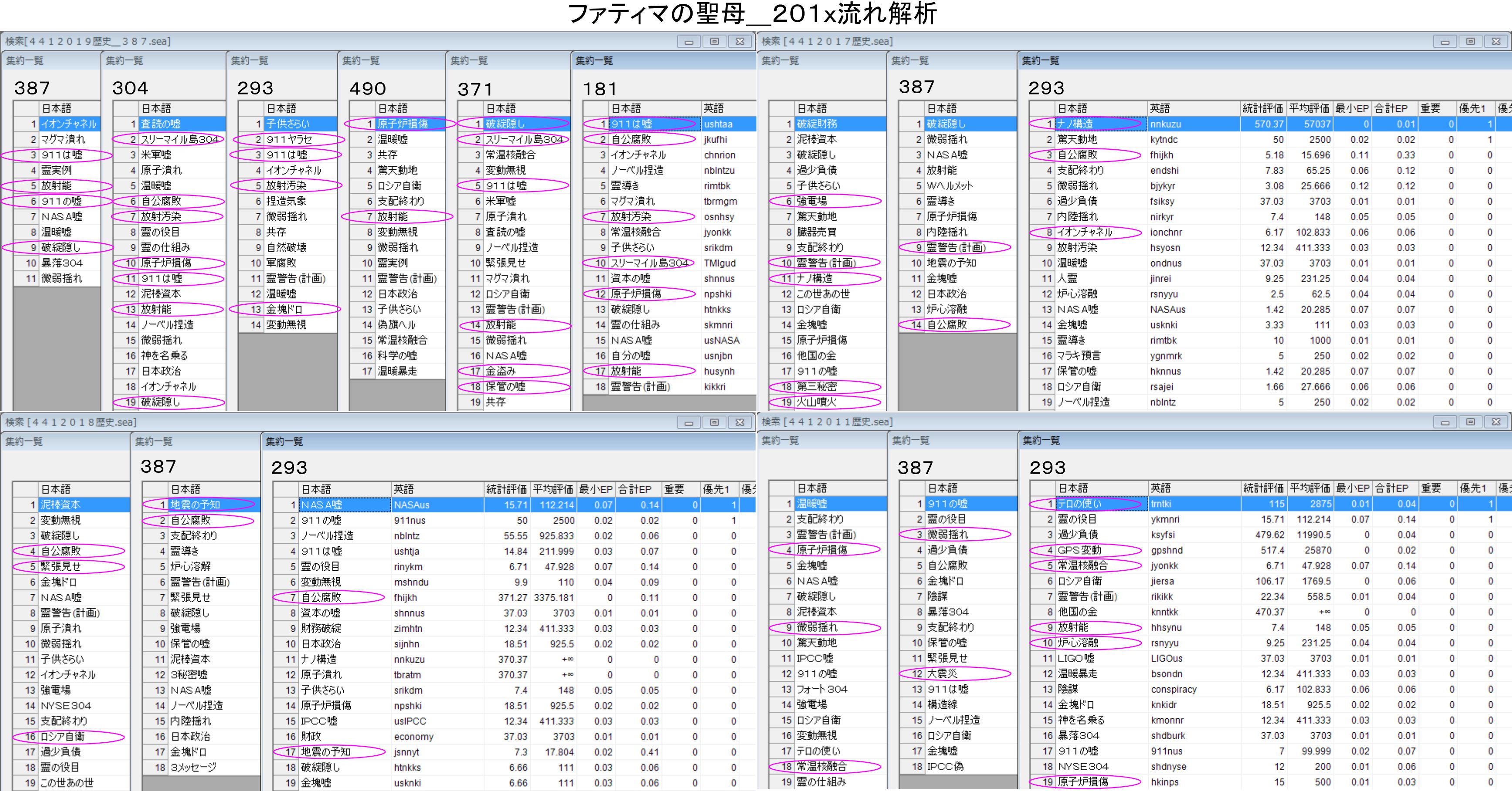 以下441のファティマの聖母の数値を用いた2011年、2017~2019年の解析です。2018年までは過去の情報ですが、2019年は未来の情報であり、彼らの教える未来の計画とも言えるでしょう。