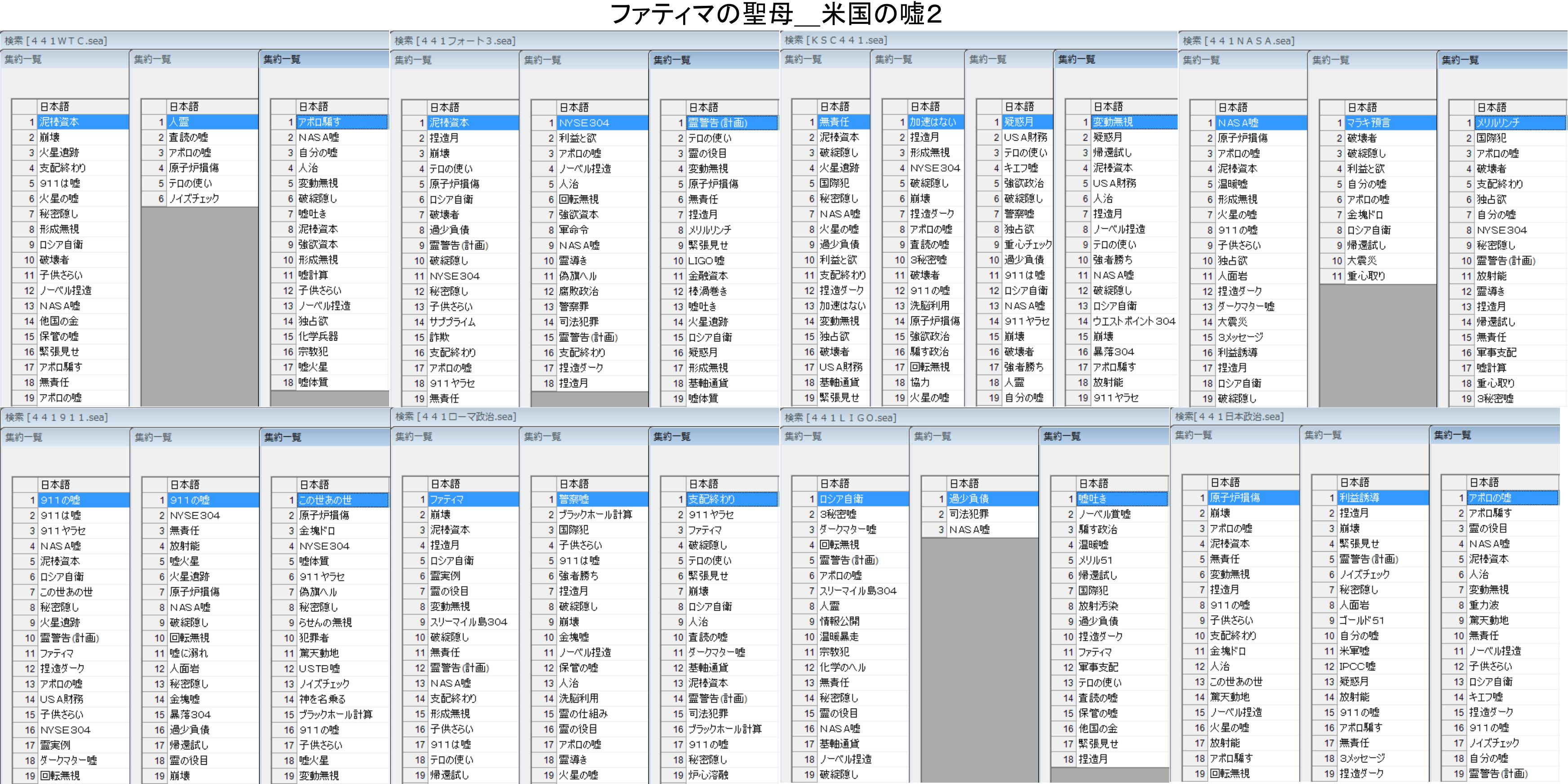 441WTC 569 泥棒資本、2崩壊、3火星遺跡、4支配終わり、5911は嘘、10破壊者、14他国の金、15保管の嘘