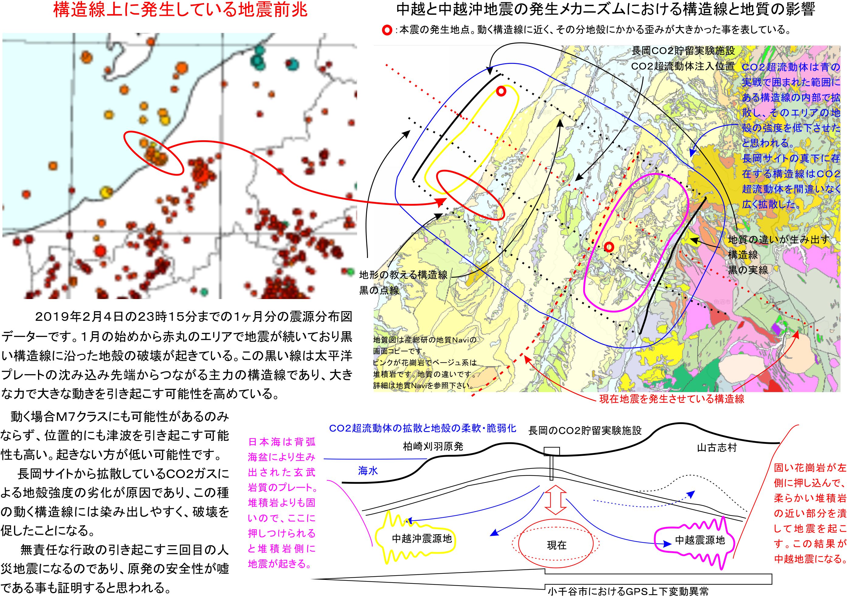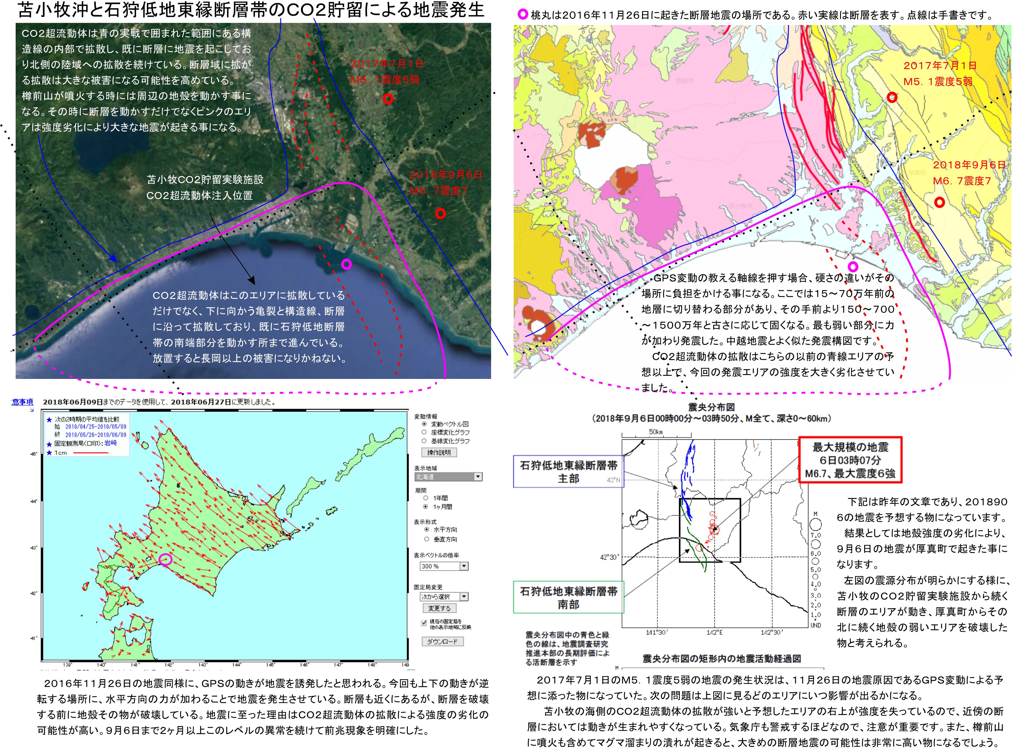 この場所で長岡のCO2貯留実験施設の引き起こす人災地震の3回目が起きる可能性を2017年から指摘しています。同時に指摘していた苫小牧のCO2貯留実験施設は、2018年の9月6日の北海道胆振東部の地震M6.7で現実化しました。GPS変動データーの異常を事前に公表しており地震の予知をある程度ですが現実化しています。微弱地震のデーターを使うことが出来れば、直前の時期の予想にも可能性があったと考えています。