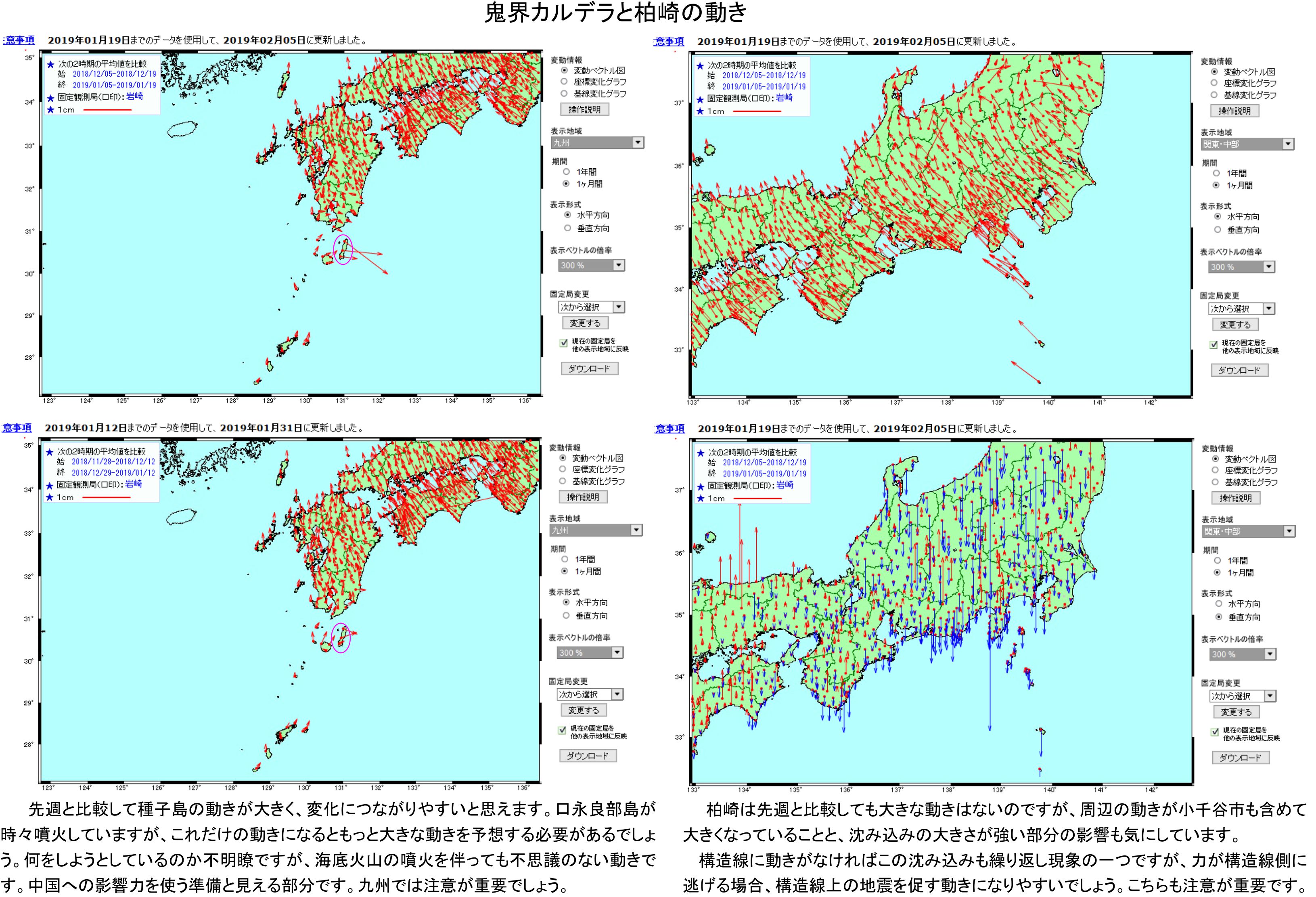 先週と比較して種子島の動きが大きく、変化につながりやすいと思えます。口永良部島が時々噴火していますが、これだけの動きになるともっと大きな動きを予想する必要があるでしょう。何をしようとしているのか不明瞭ですが、海底火山の噴火を伴っても不思議のない動きです。中国への影響力を使う準備と見える部分です。九州では注意が重要でしょう。地震も火山の噴火も含めて九州全体に影響出来る動きです。
