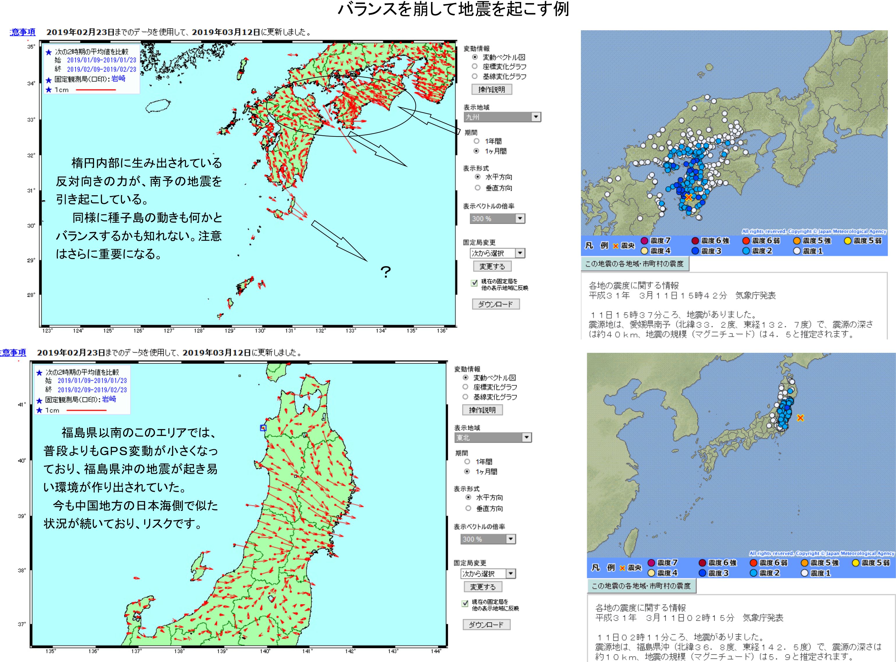 2週間GPS変動データーの動きを見せないことで、南予の地震を予想させなかったことになりますし、福島の異常にも気づけなかったでしょう。これをする意味が本当にあるのか、今後の状況次第です。