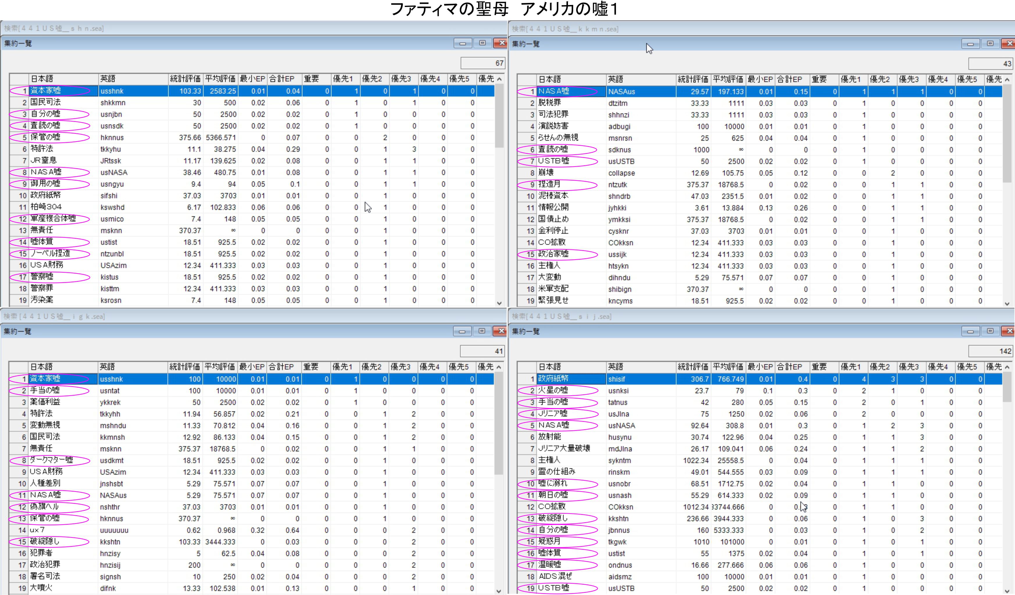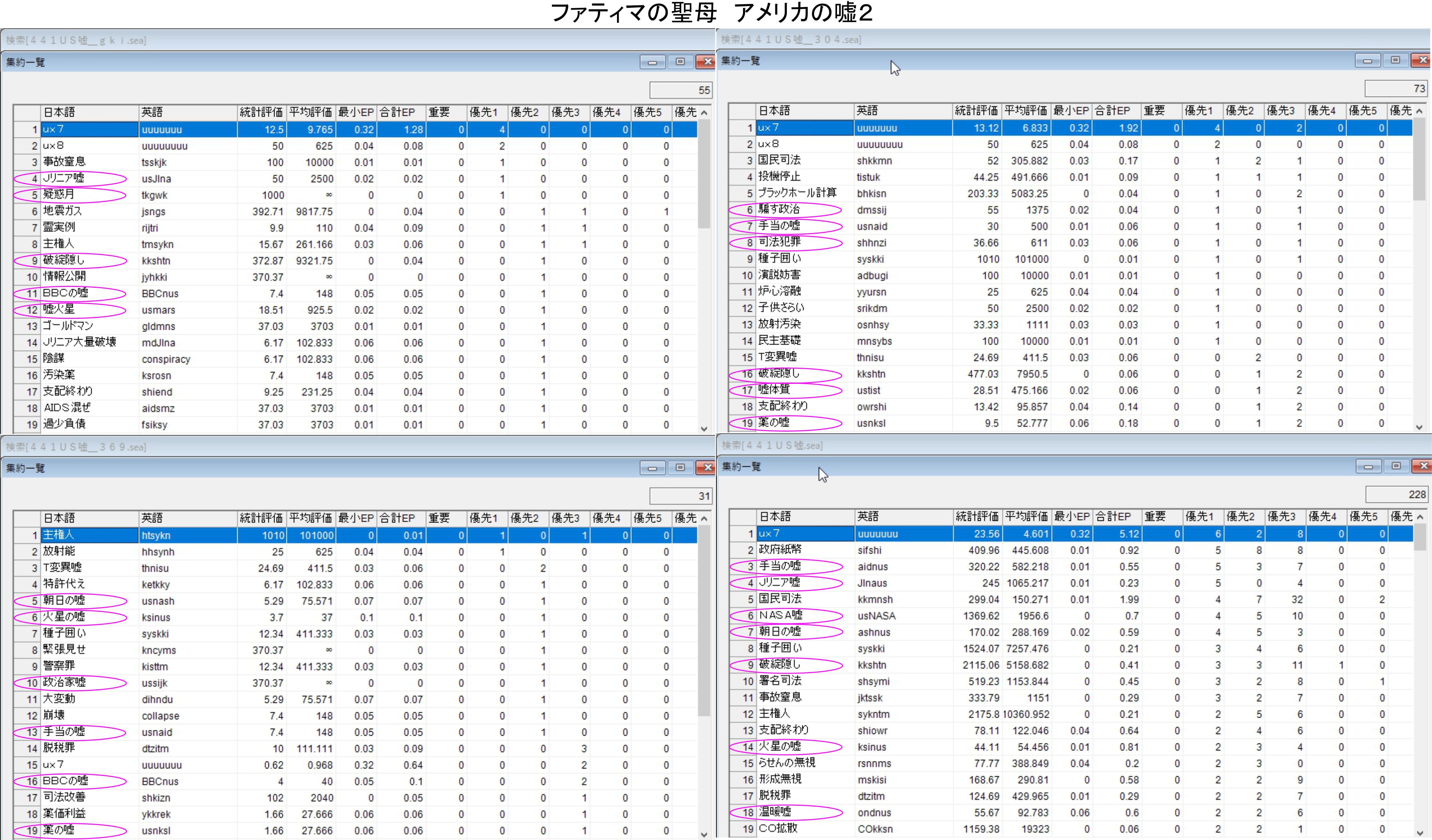 この記事はアメリカの嘘という記事なので、ファティマの聖母の解析にもUS嘘を加えて解析をしました。以下そのまとめです。
