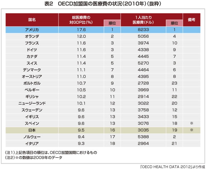 この問題は大きい物です。少し古い物をnetから拾っていますので、イラストを参照下さい。国別の総医療費の対GDP比、一人当たり医療費がまとめられています。