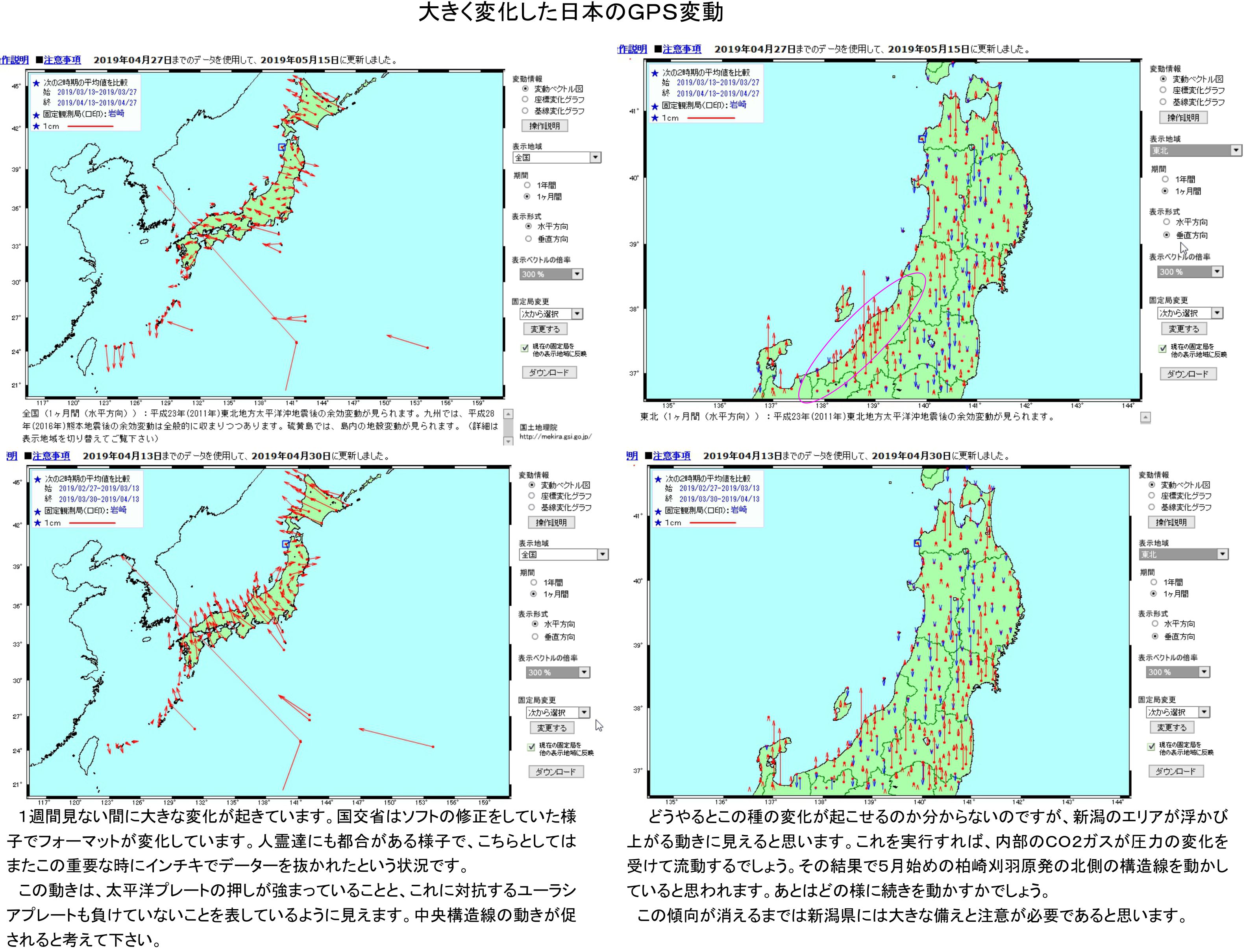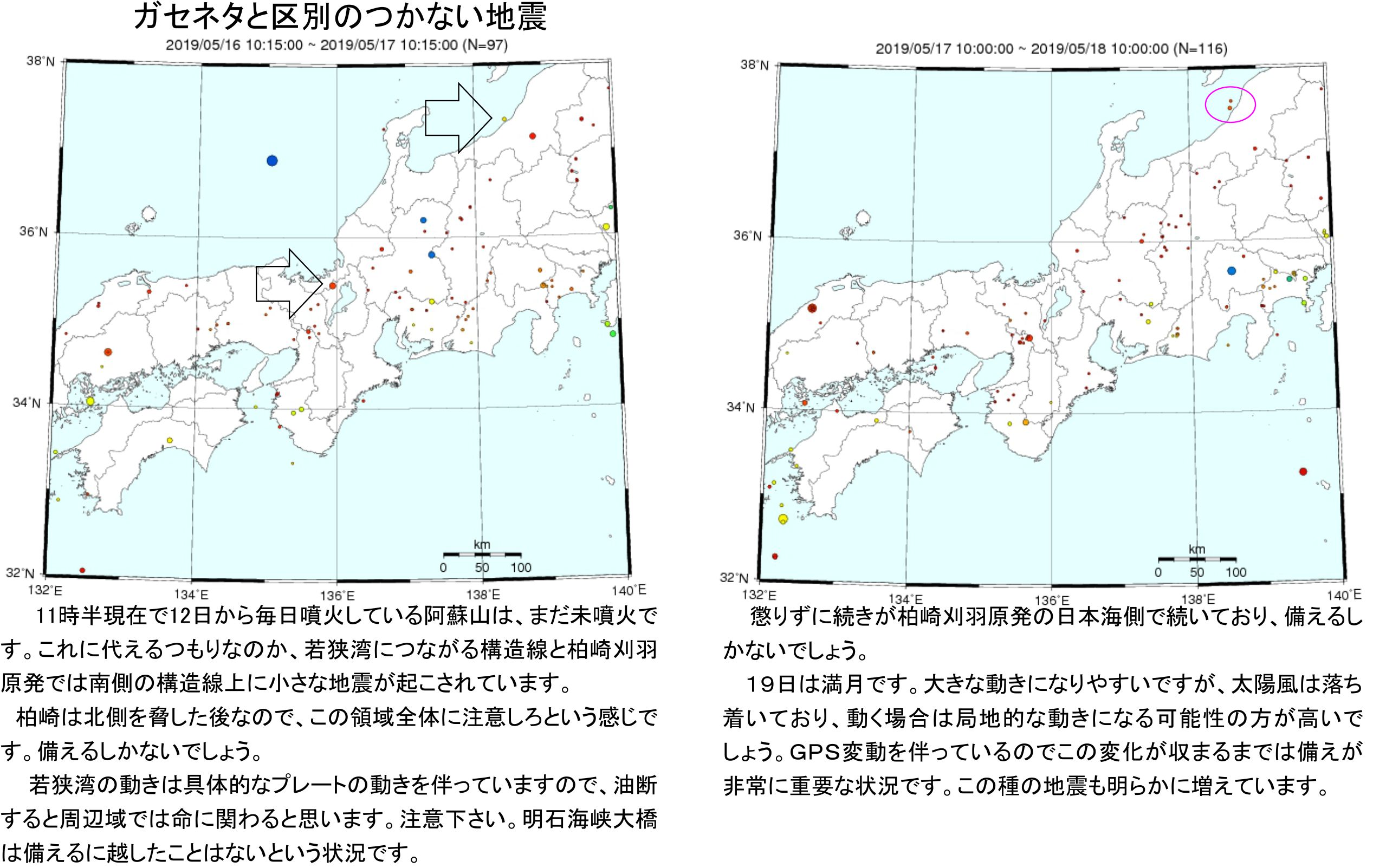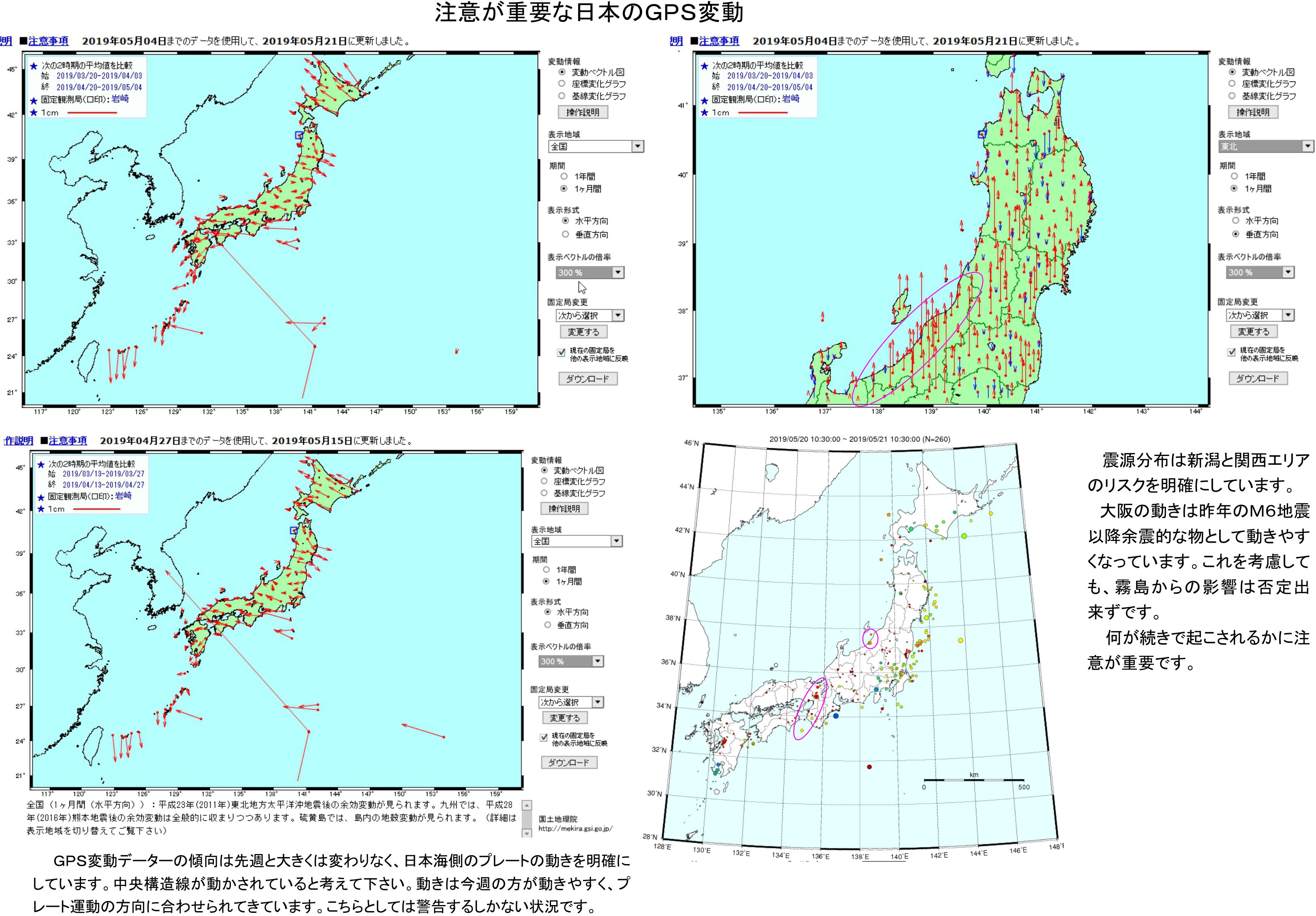 2019523に前後して何をするのか分かりませんが、GPSにも震源分布にも地震科学として具体的な動きが見られるので備えと注意は重要な状況です。