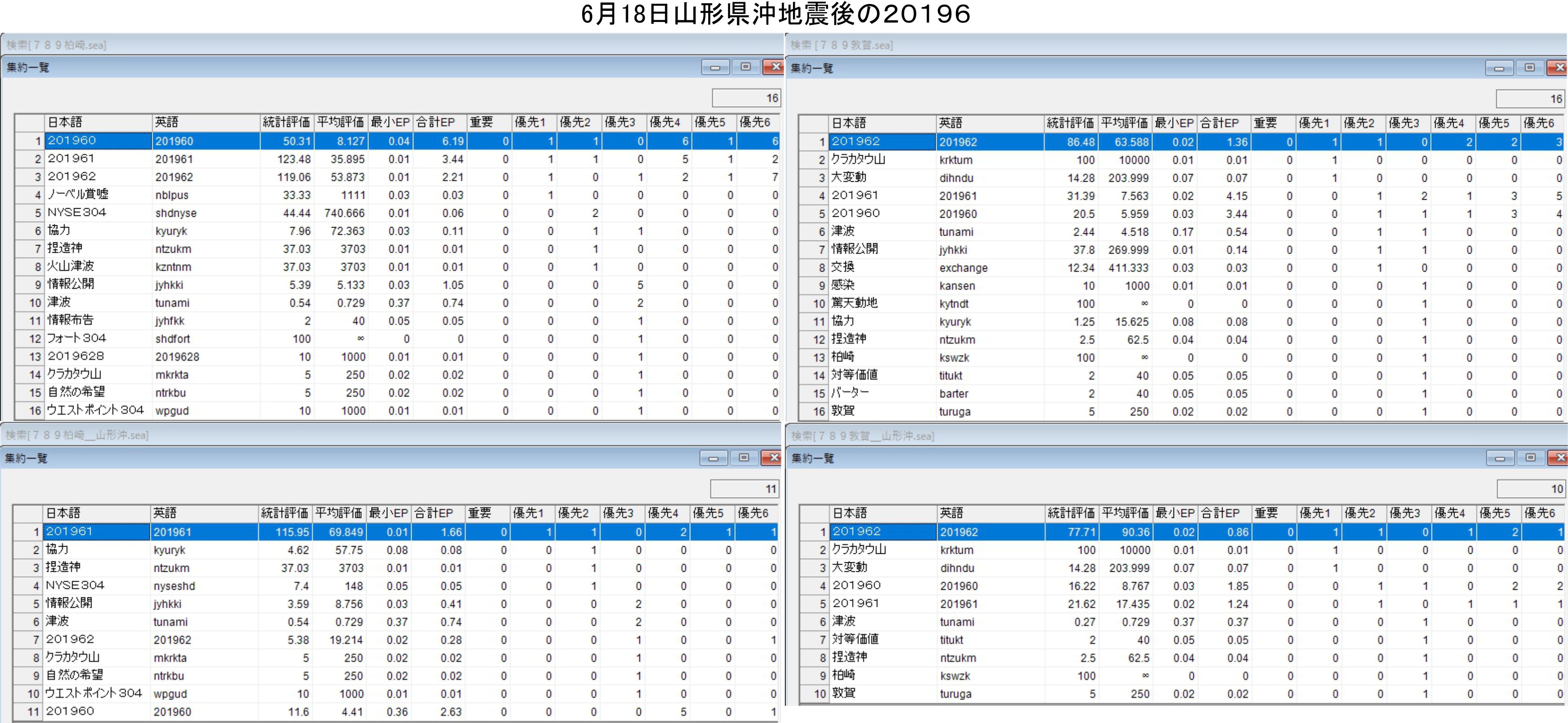 こちらの事前の予想は柏崎刈羽原発であり、敦賀、明石海峡大橋と続くところでした。結果は予想外れであり、6月18日に地震が起きるという部分のみの当たりでしょう。地震科学としての当たりではなく地の声の当たりです。