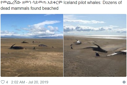 恐らくメインの理由はアイスランドに打ち上げられた約60匹のクジラたちでしょう。まだニュースを目にしただけですので、位置の解析から、何がメインのメッセージなのか、この位置だと調べるのに手間取るかも知れません。